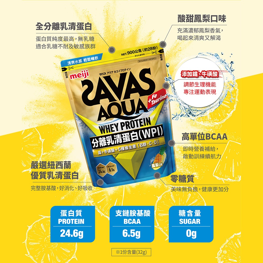 明治 SAVAS AQUA全分離乳清蛋白粉 鳳梨 900g │ meiji明治旗艦館鳳梨(附湯匙)Fitnessmeiji 明治旗艦館 | SAVAS