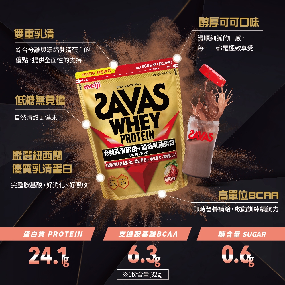 明治 SAVAS乳清蛋白粉 香草/可可 900g │ meiji明治旗艦館可可 (附湯匙)|香草 (附湯匙)Fitnessmeiji 明治旗艦館 | SAVAS