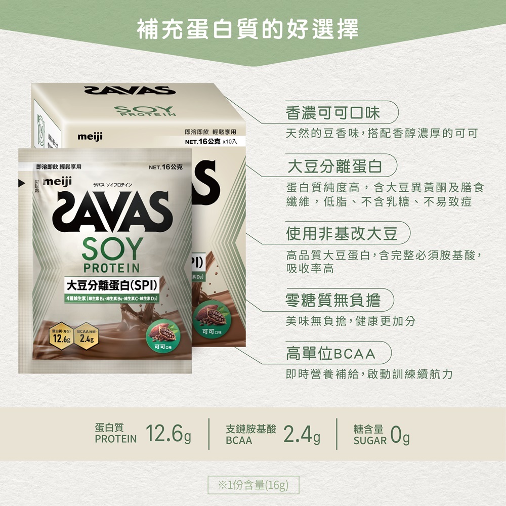 明治 SAVAS大豆蛋白粉 奶茶/可可 隨手包(16gx10) │ meiji明治旗艦館奶茶|可可Fitnessmeiji 明治旗艦館 | SAVAS