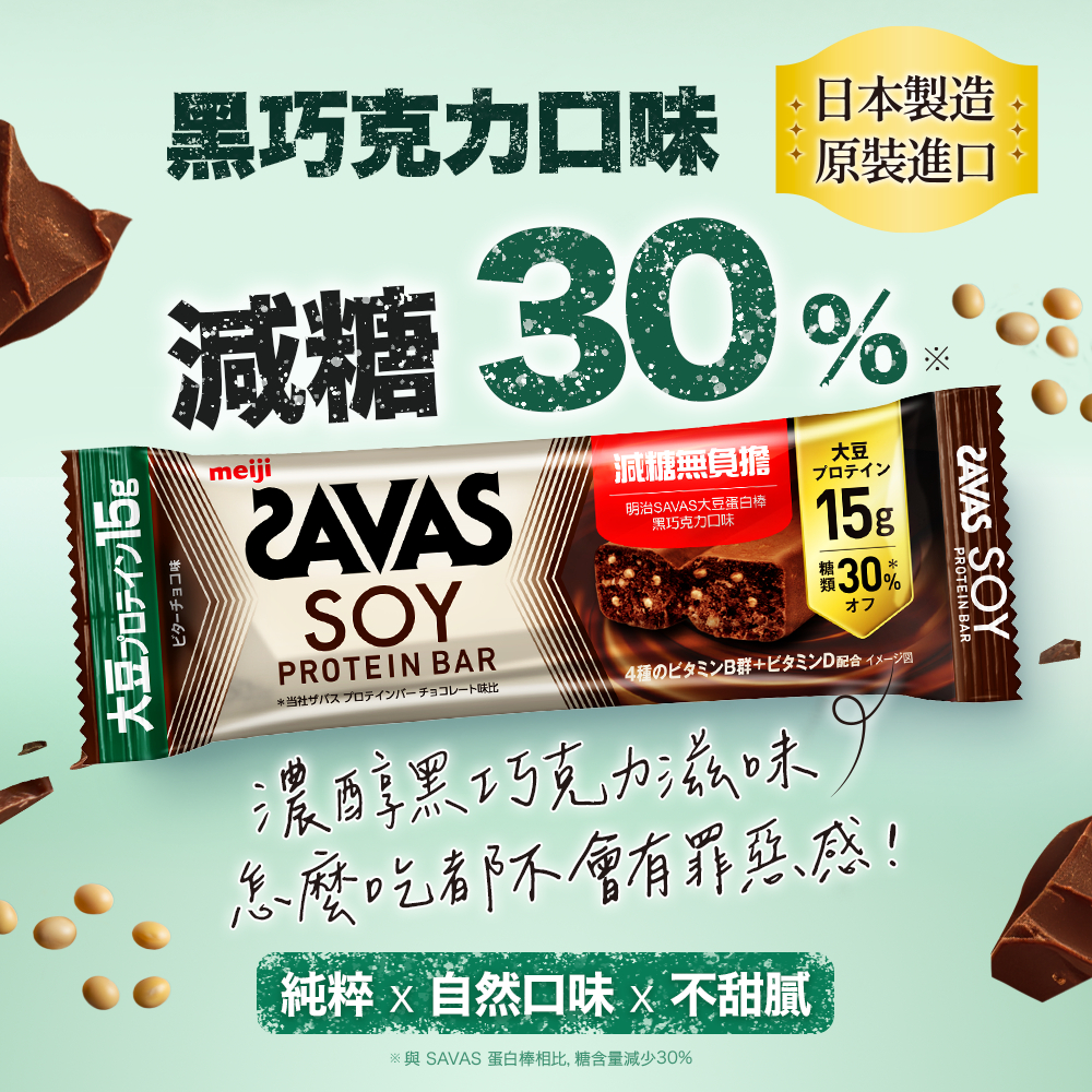SAVAS大豆蛋白棒 黑巧克力口味 45gx12 │meiji明治旗艦館黑巧克力口味 (45gx12)Fitnessmeiji 明治旗艦館 | SAVAS