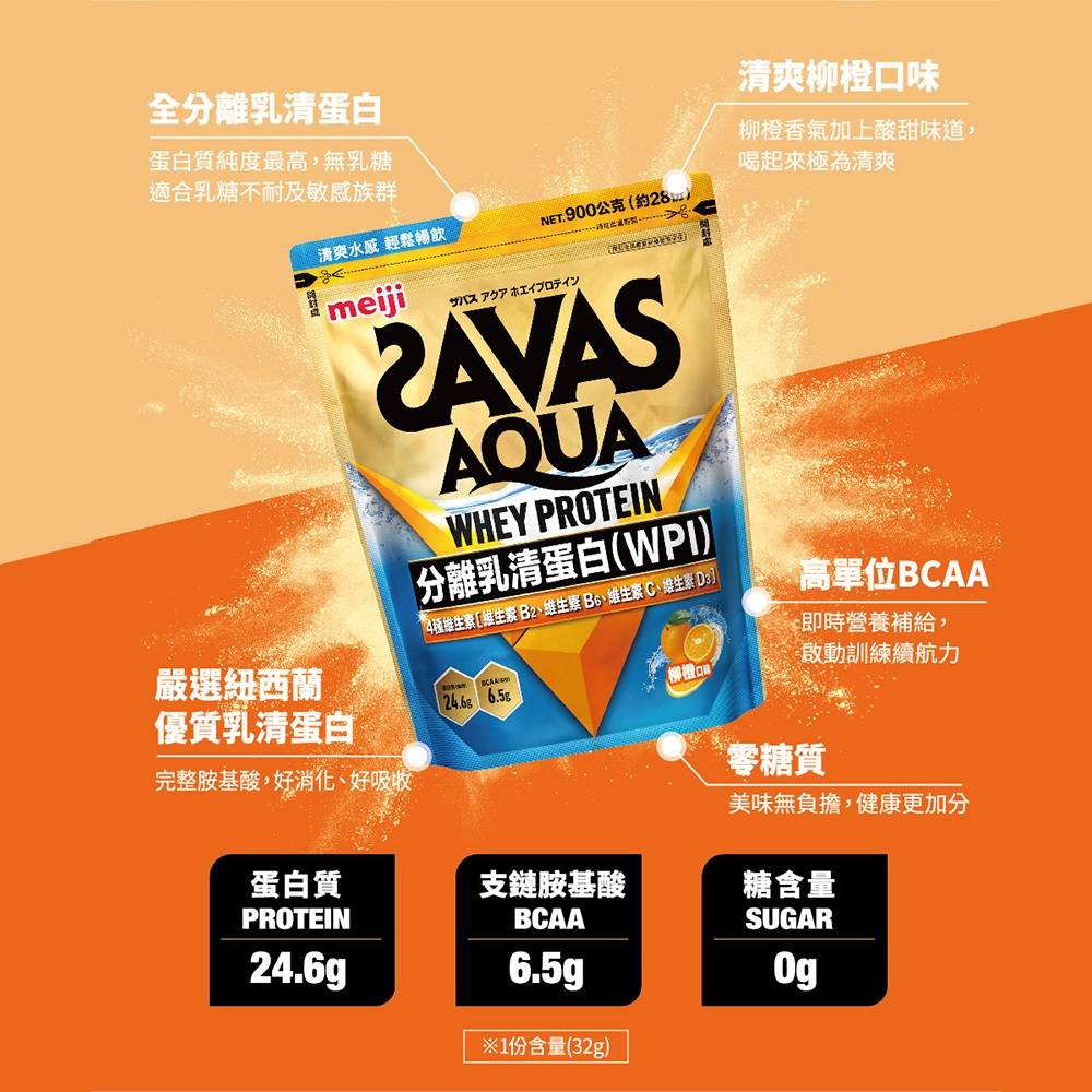 明治 SAVAS AQUA全分離乳清蛋白粉 柳橙 900g │ meiji明治旗艦館柳橙口味(附湯匙)Fitnessmeiji 明治旗艦館 | SAVAS