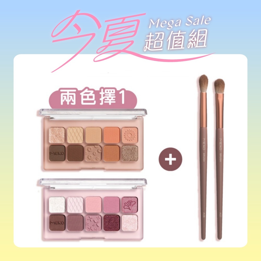 MEKO 春日蜜語刷組:花韻幻鏡十色眼彩盤+夕色金緋巧緻眼影暈染刷01春日小雛菊+暈染刷+眼影刷(大)|02浪漫紫羅蘭+暈染刷+眼影刷(大)EyesMEKO風格美妝【官方旗艦館】