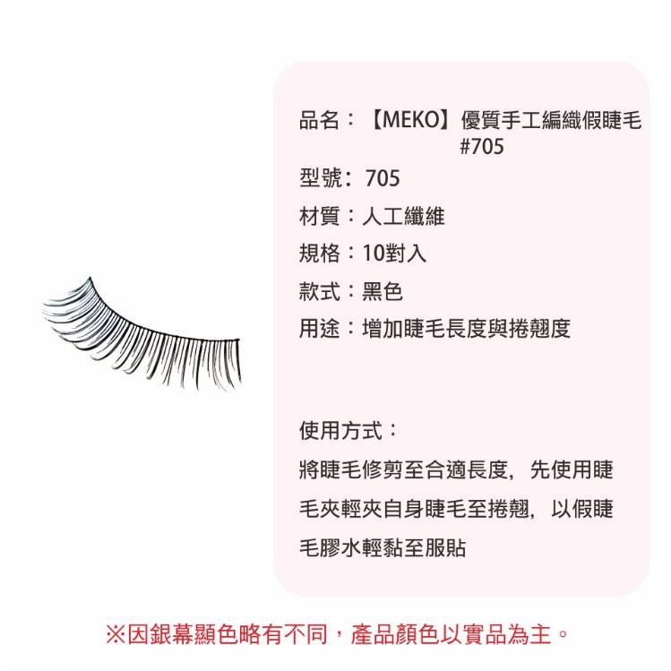 MEKO 優質手工編織假睫毛 – 705 (直式織法)【官方旗艦館】MEKO 優質手工編織假睫毛 – 705 (直式織法)【官方旗艦館】Makeup AccessoriesMEKO風格美妝【官方旗艦館】