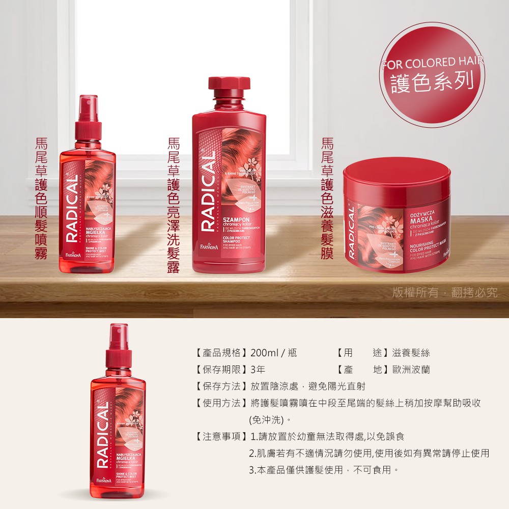 RADICAL 波蘭植萃 – 馬尾草護色順髮噴霧 【官方旗艦館】RADICAL 波蘭植萃 – 馬尾草護色順髮噴霧 【官方旗艦館】Hair TreatmentMEKO風格美妝【官方旗艦館】