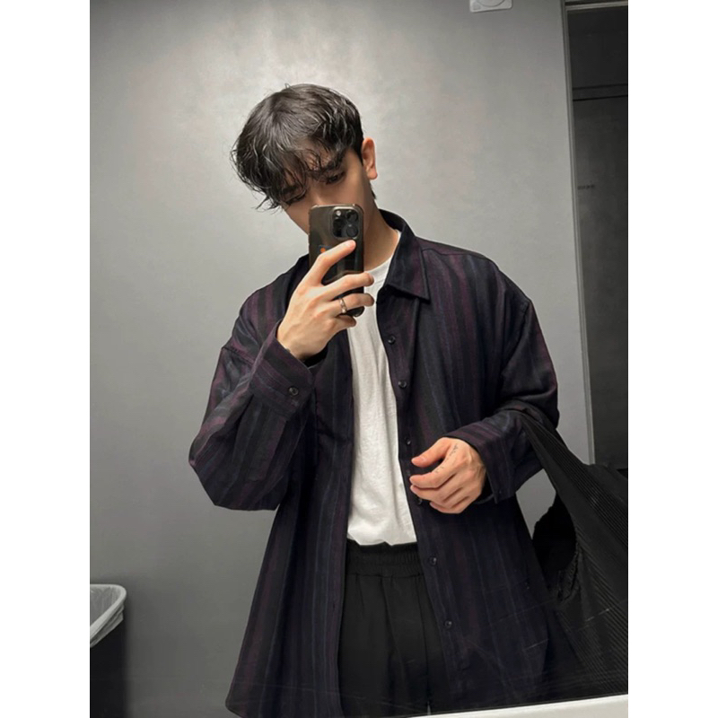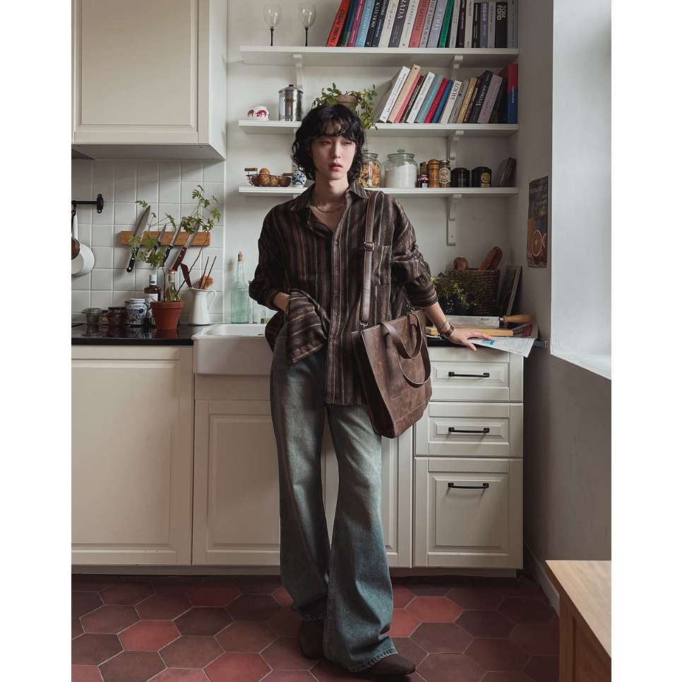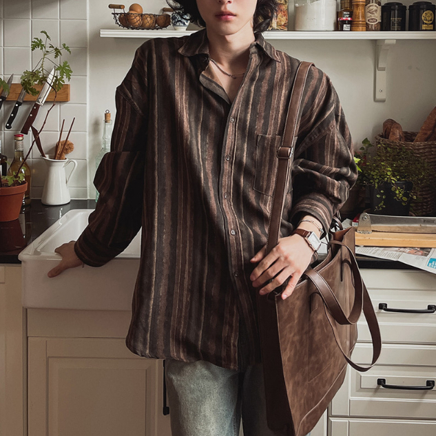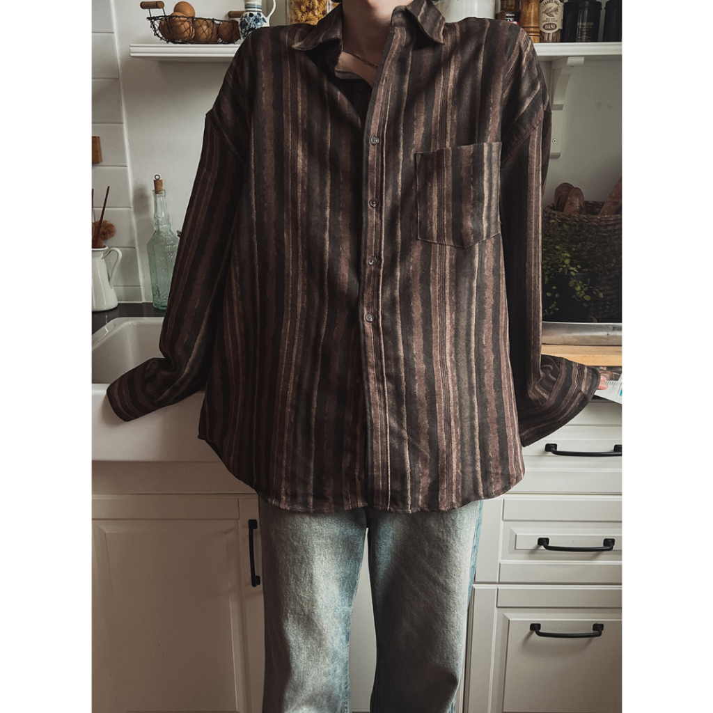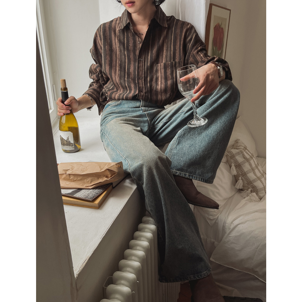 【Metanoia】🇰🇷韓製 條紋復古長袖襯衫棕色,F|海軍藍,FShirtsMetanoia 正韓服飾 & MdoC 總代理