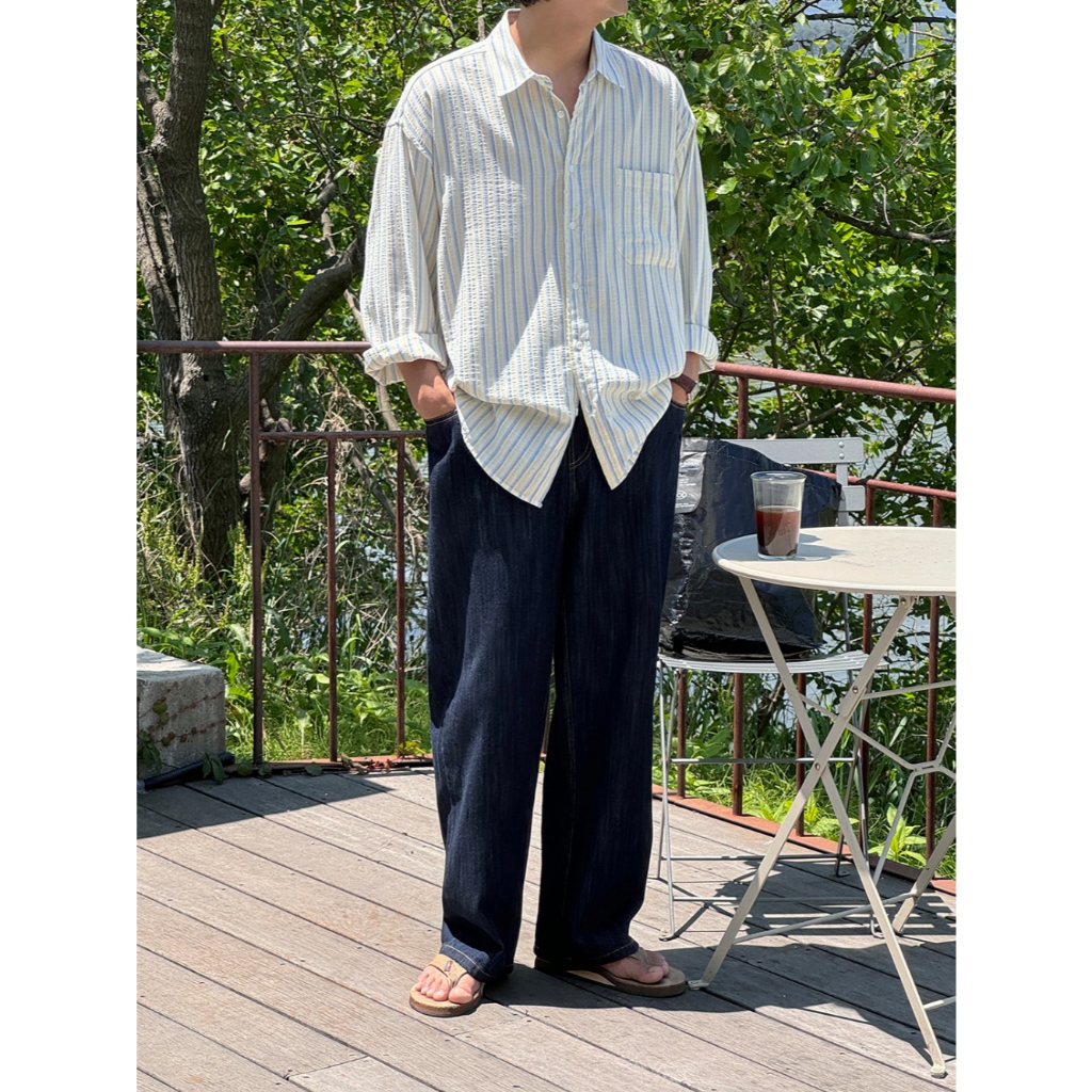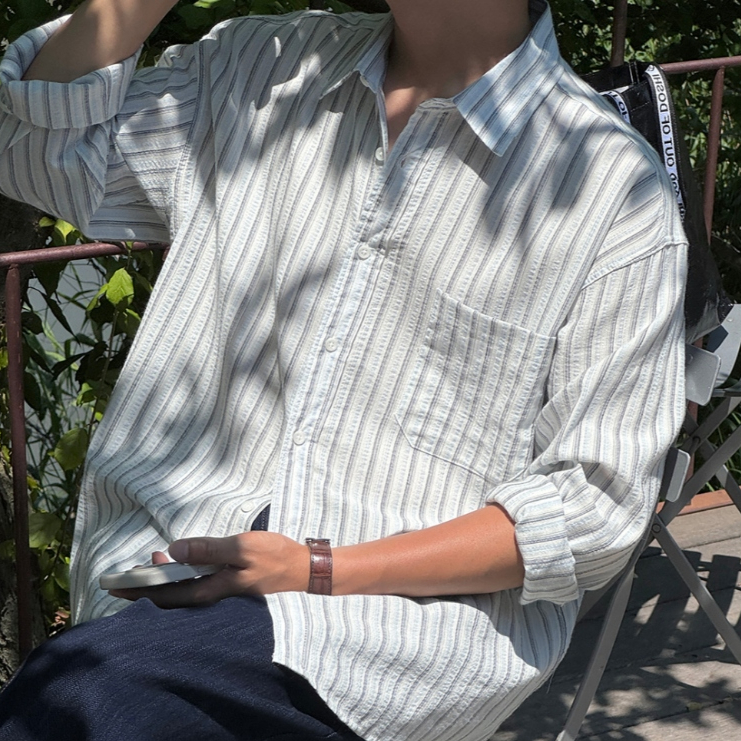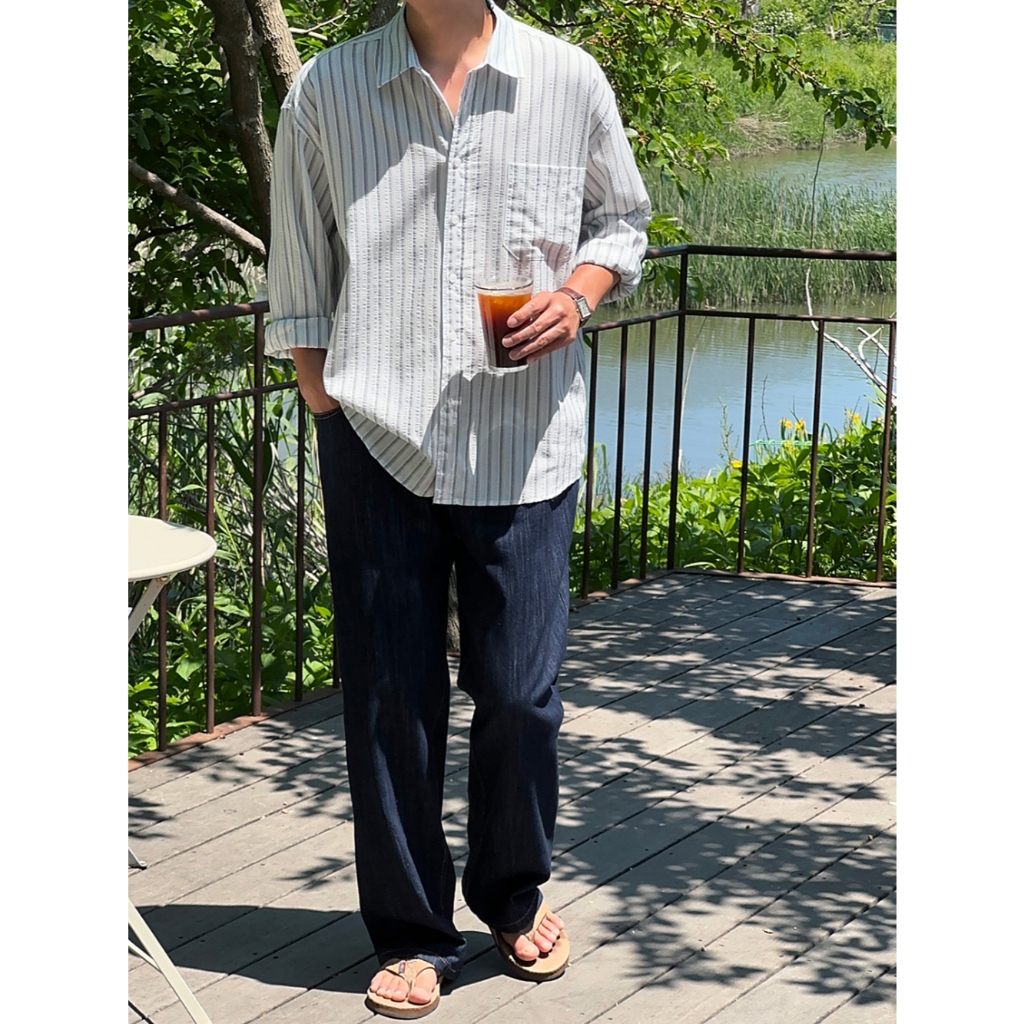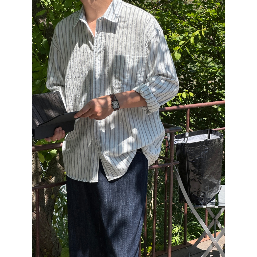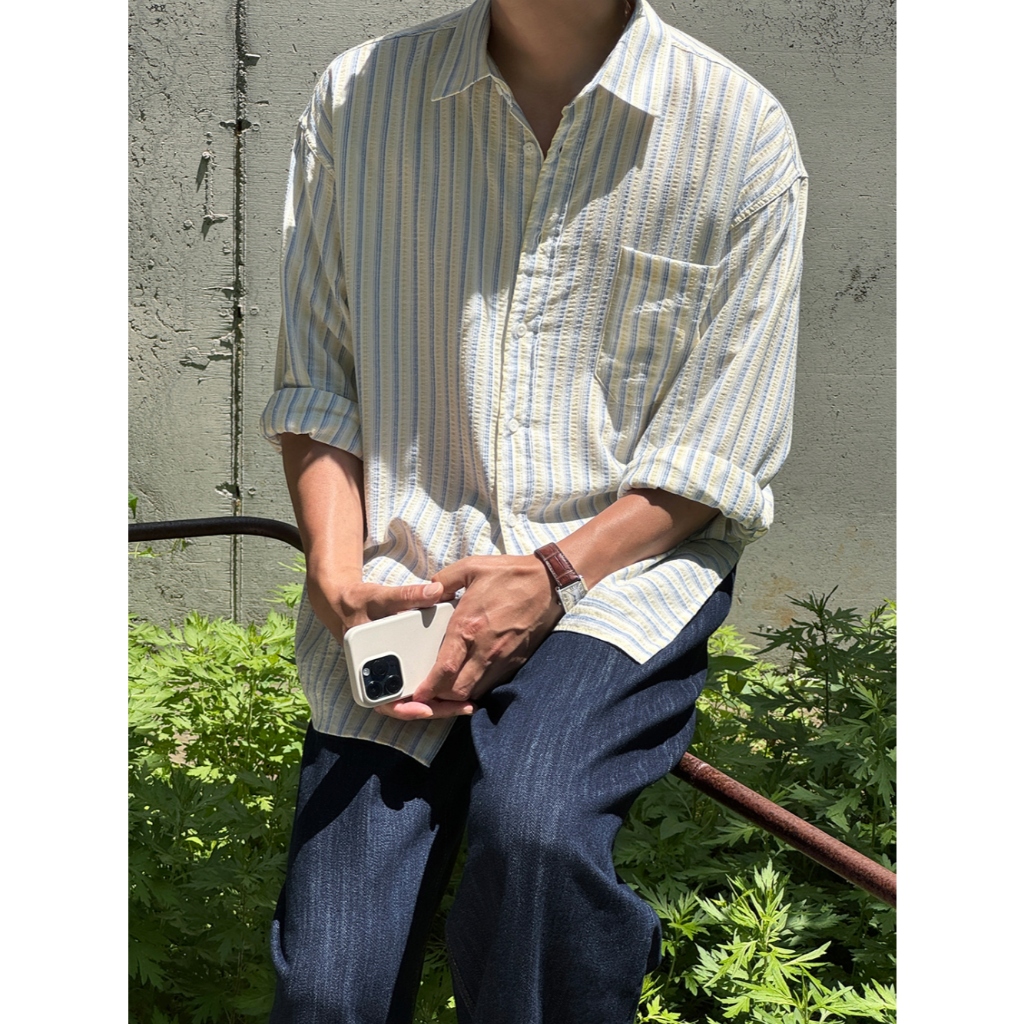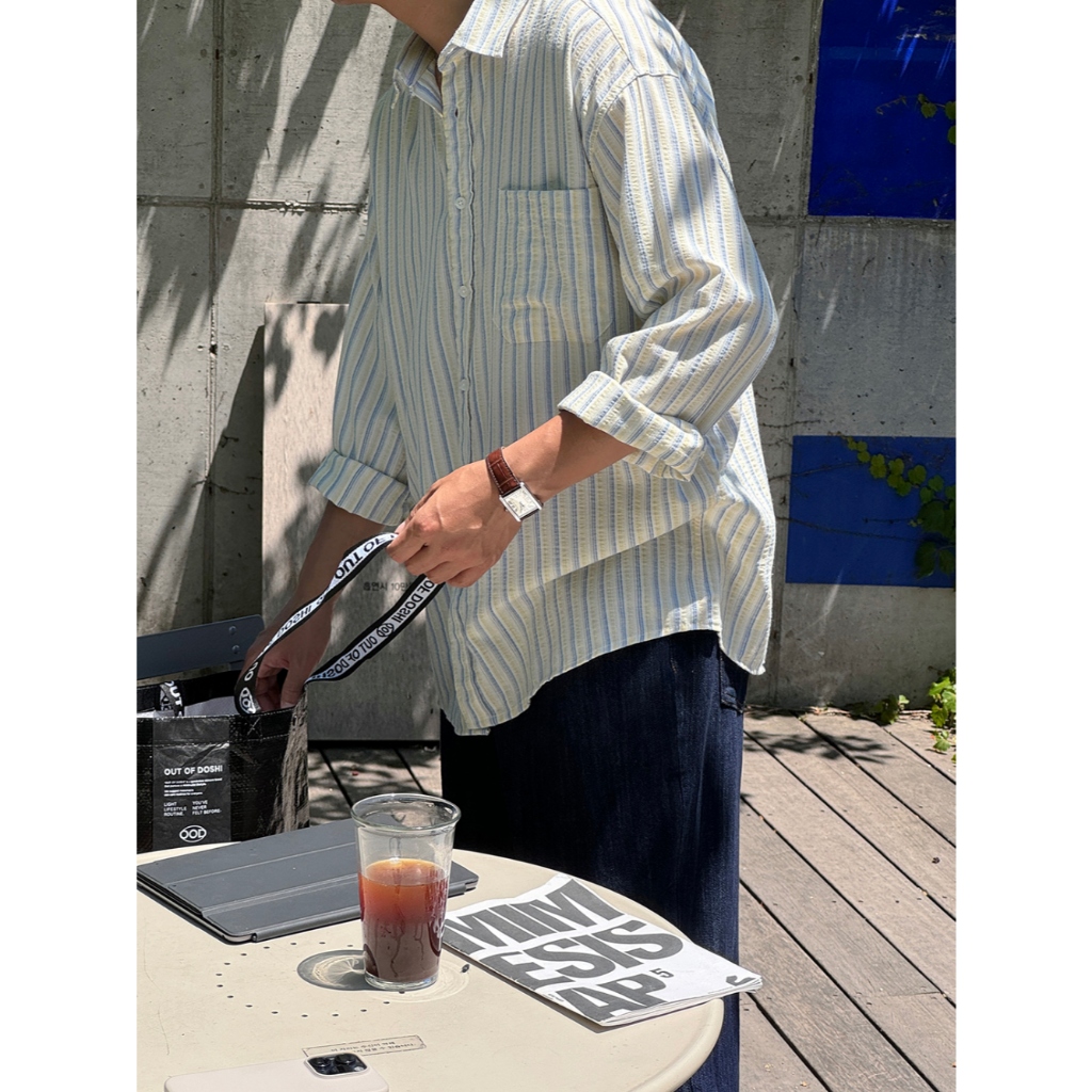 【Metanoia】🇰🇷韓製 寬鬆條紋襯衫天藍色,F|黃色,FShirtsMetanoia 正韓服飾 & MdoC 總代理