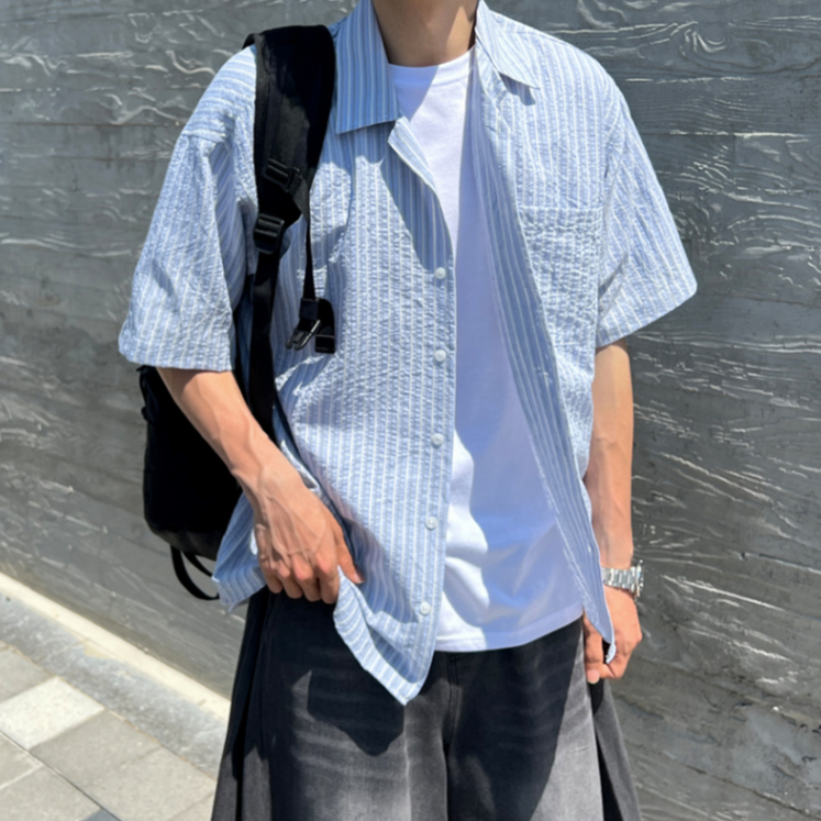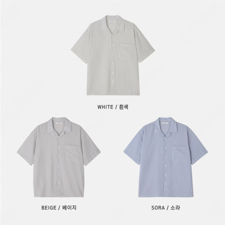 【Metanoia】🇰🇷韓製 古巴領條紋短袖襯衫白色,F|米色,F|天藍色,FShirtsMetanoia 正韓服飾 & MdoC 總代理