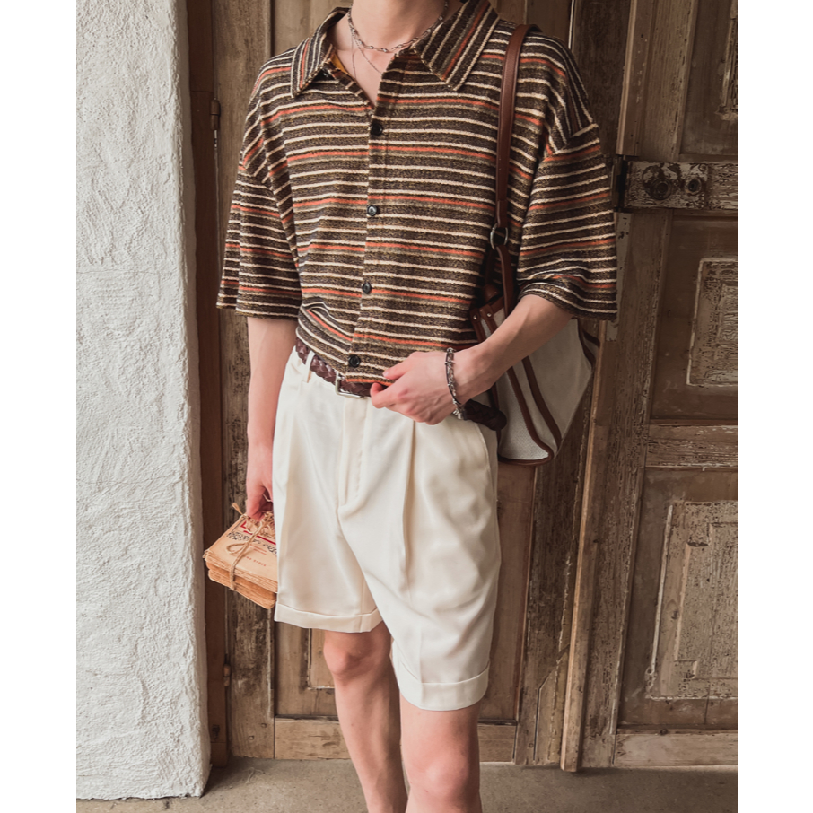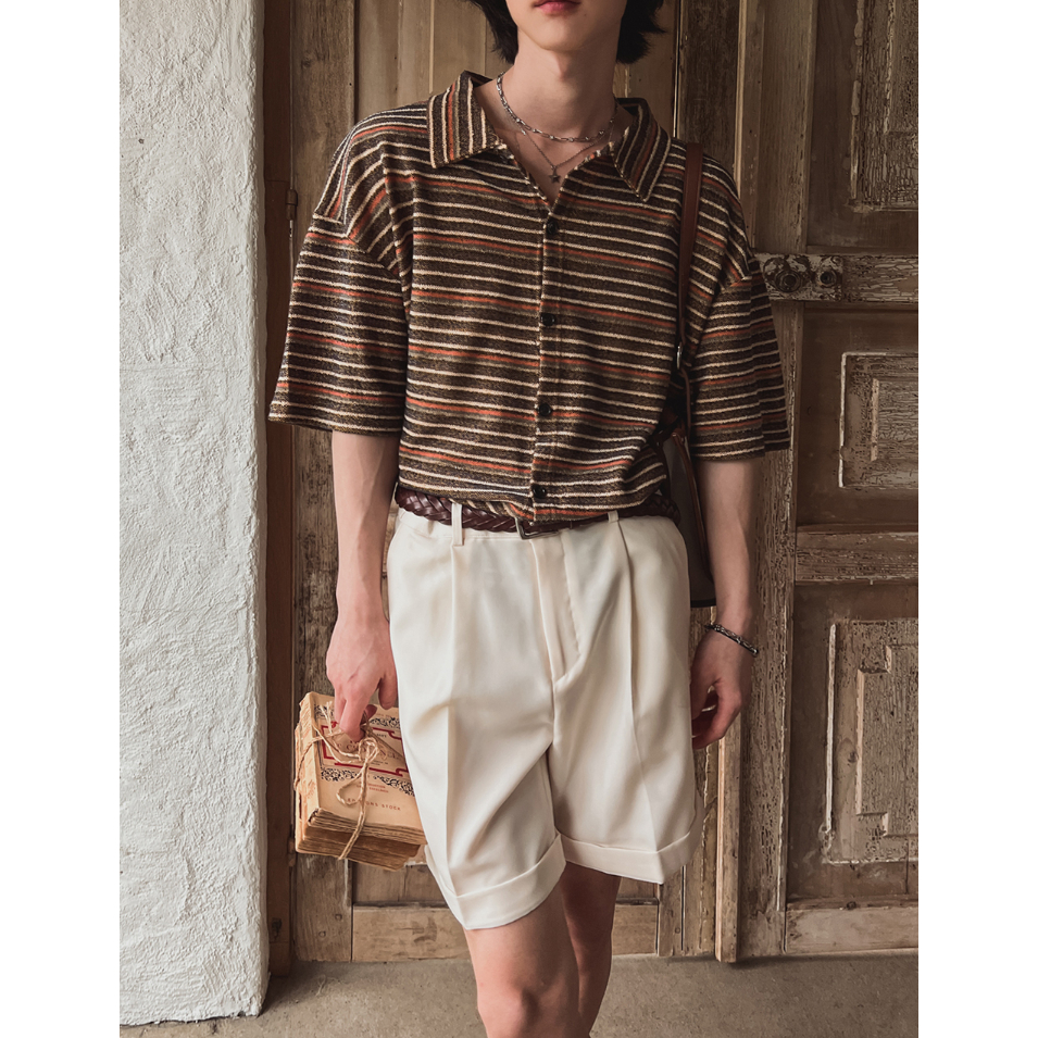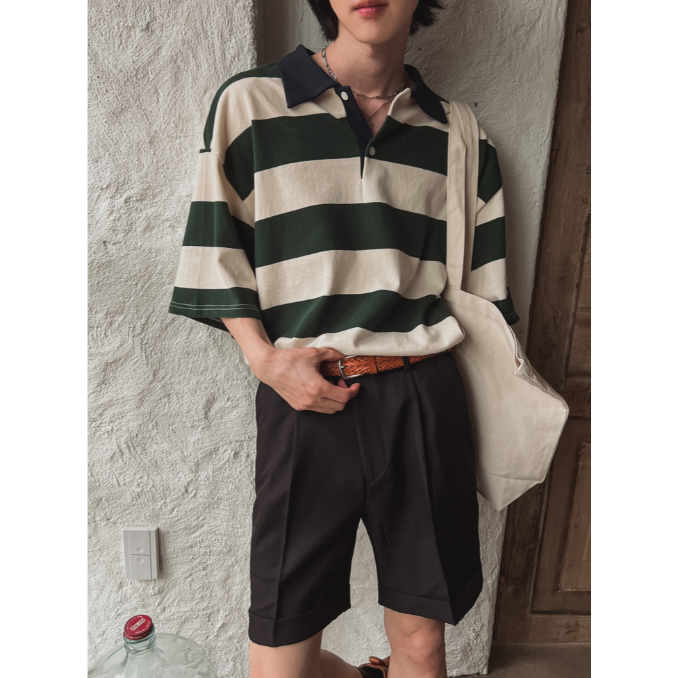 【Metanoia】🇰🇷韓製 翻領條紋短袖上衣