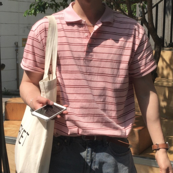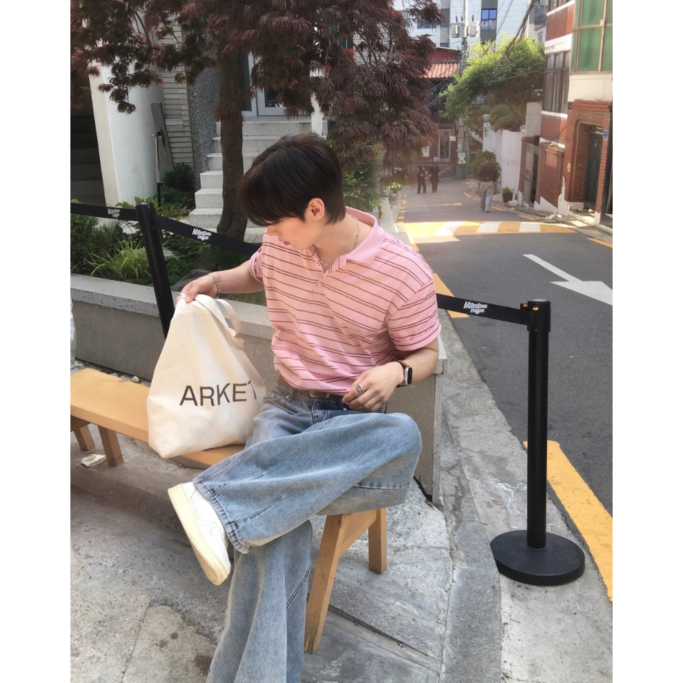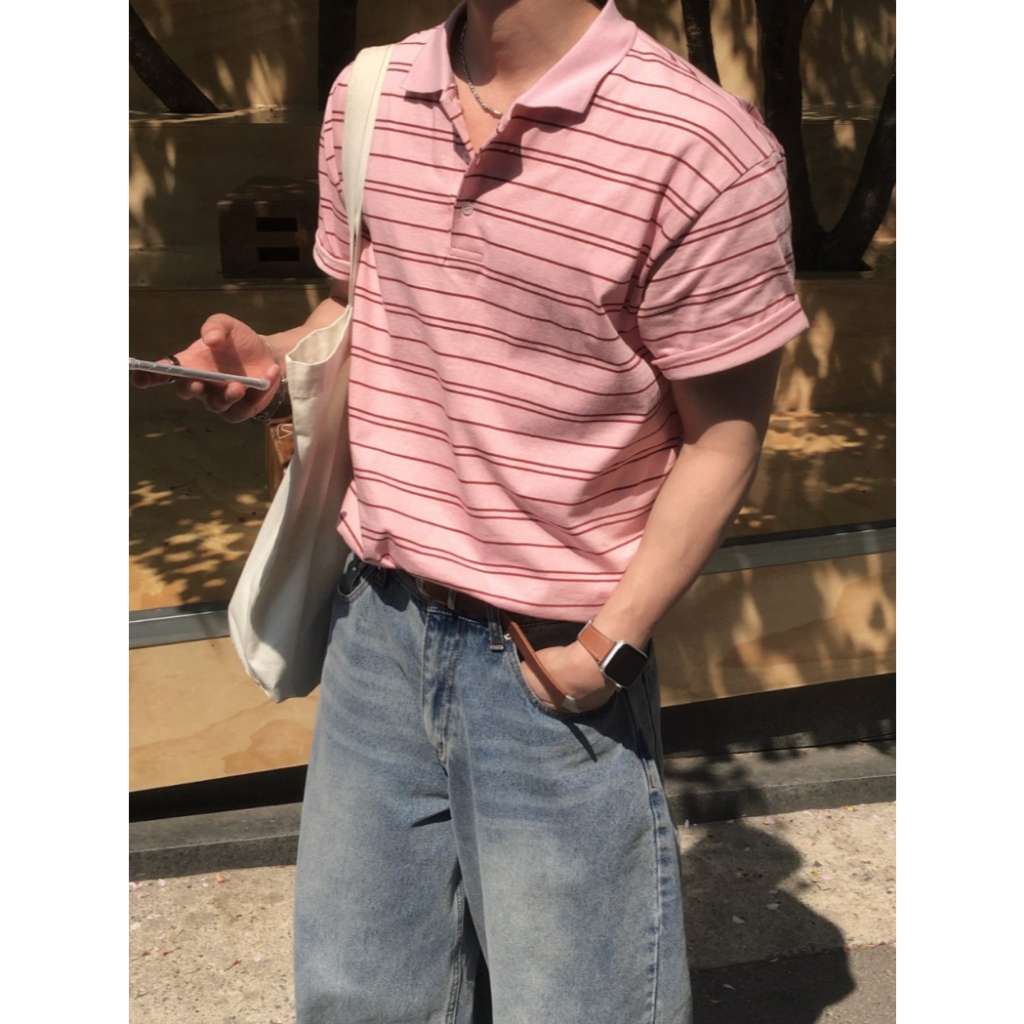 【Metanoia】🇰🇷韓製 翻領條紋短袖上衣粉色,F|棕色,F|海軍藍,F|象牙色,FT-ShirtsMetanoia 正韓服飾 & MdoC 總代理