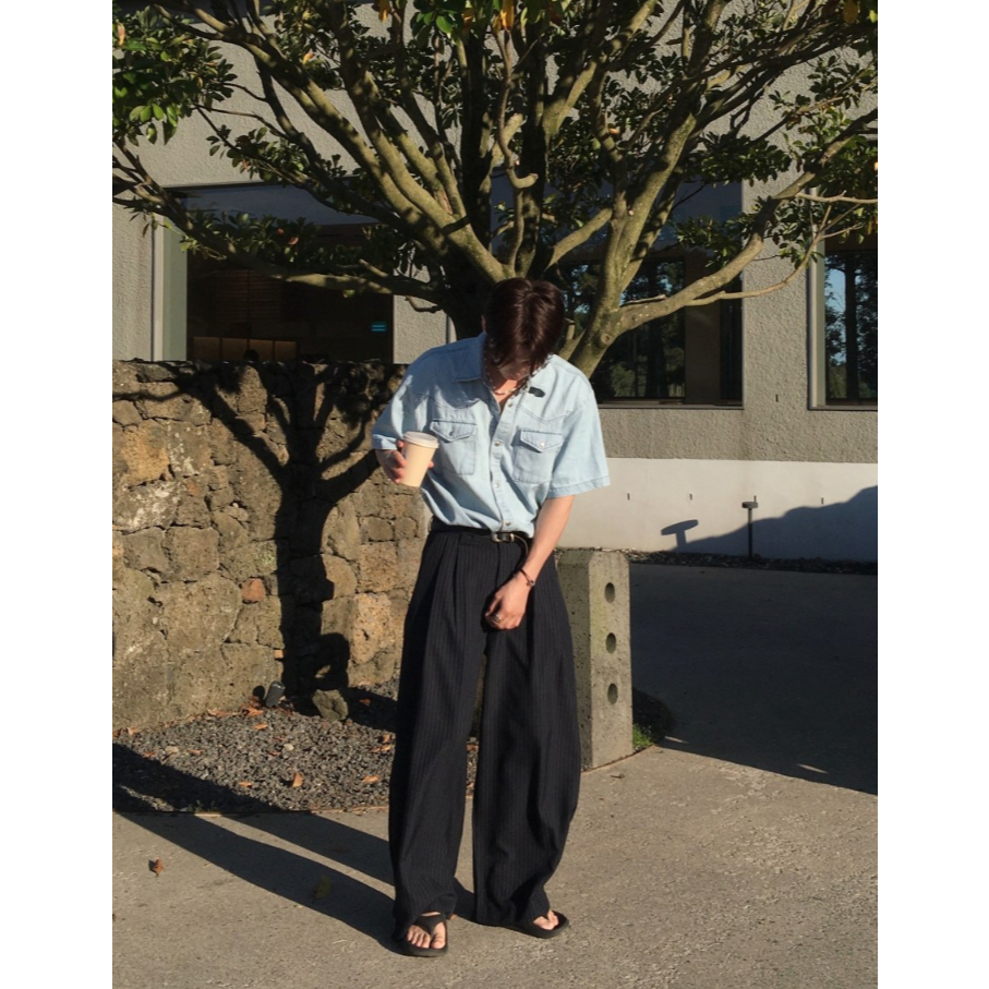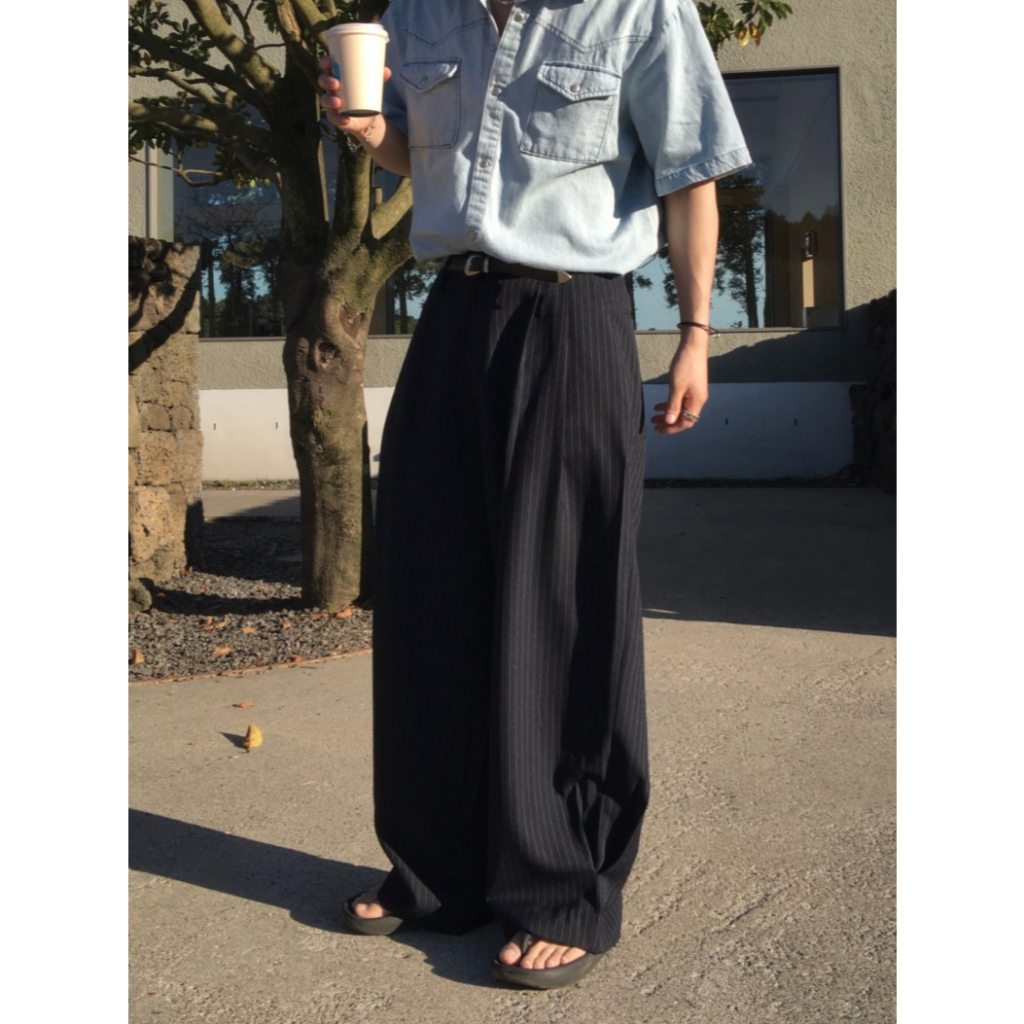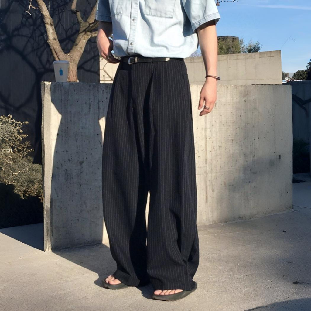 【Metanoia】🇰🇷韓製 寬鬆條紋落地褲黑色,M|黑色,L|海軍藍,M|海軍藍,LSuit PantsMetanoia 正韓服飾 & MdoC 總代理