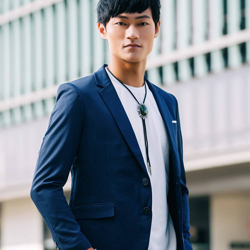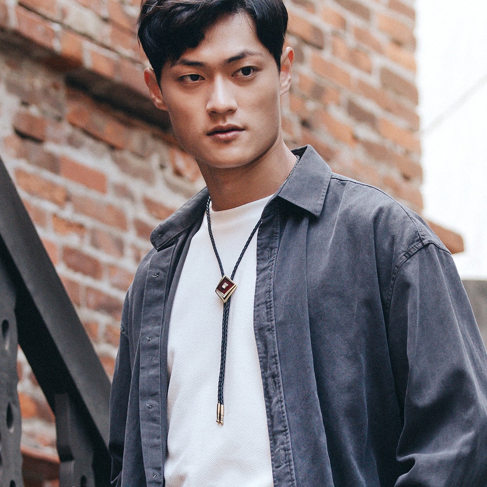 【MF select】藝術裝飾系 古銅款 領帶 真皮皮繩 保羅領帶 Bolo Tie 皮繩項鍊 領繩 領結 長項鍊蒼青(藍白)|玄墨(灰白)|青黎色(綠黃)|紺青色(深藍)|胭紅色(粉白)|翡翠色(白綠)MF select 官方旗艦店