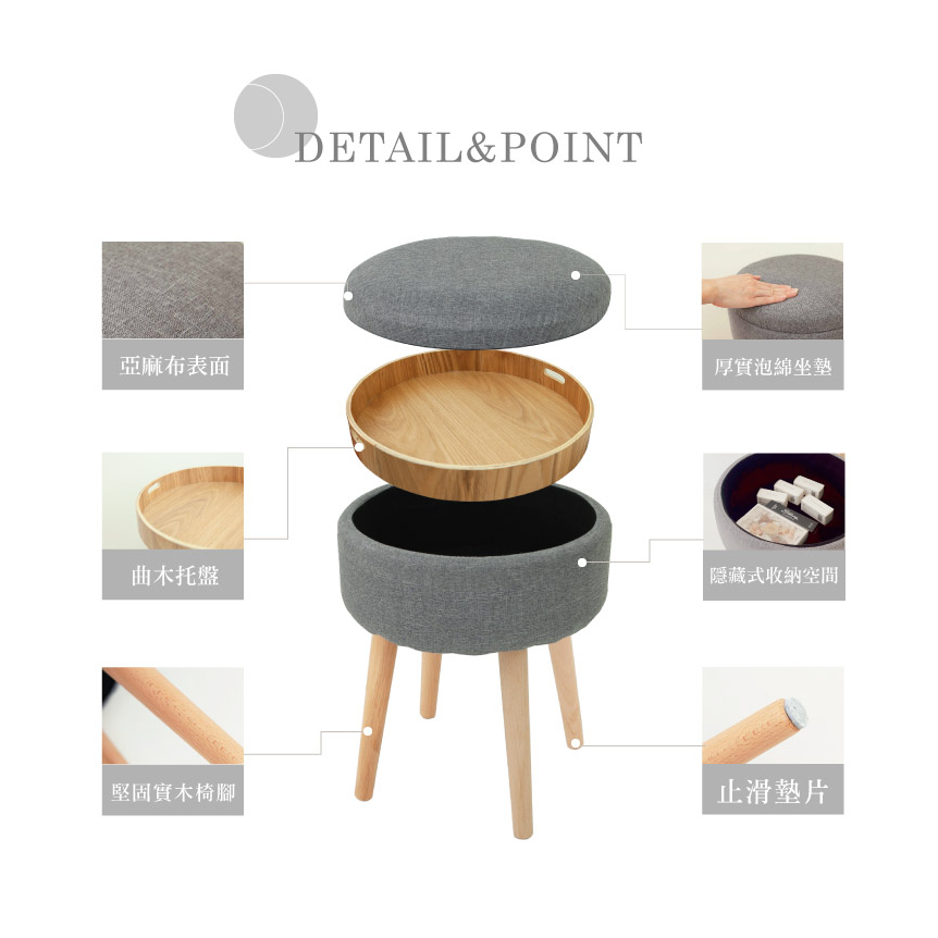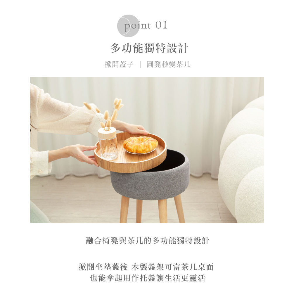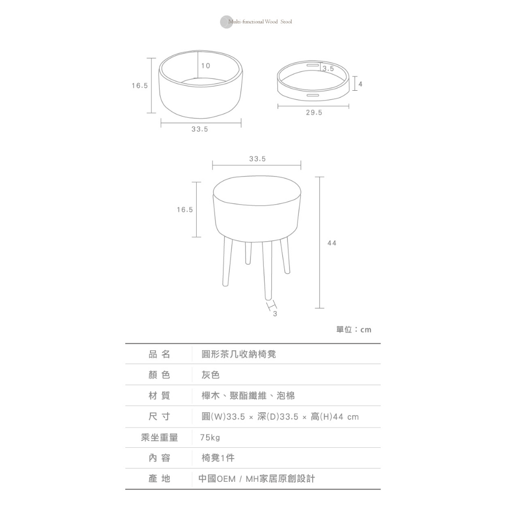 MH家居 圓形茶几收納椅凳 多功能 腳凳 矮凳 [限時優惠]灰色Benches, Chairs & StoolsMH家居嚴選-韓國家俱專賣