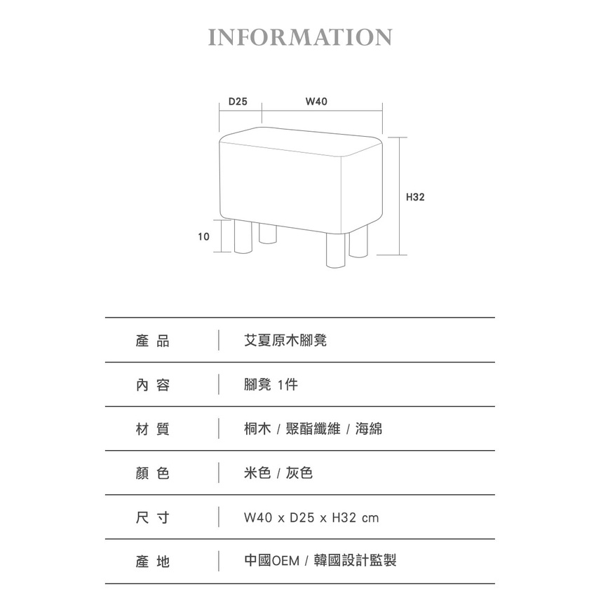 MH家居 艾夏實木椅凳 32公分 腳凳 矮凳 [韓國獨家]灰色|米灰Benches, Chairs & StoolsMH家居嚴選-韓國家俱專賣