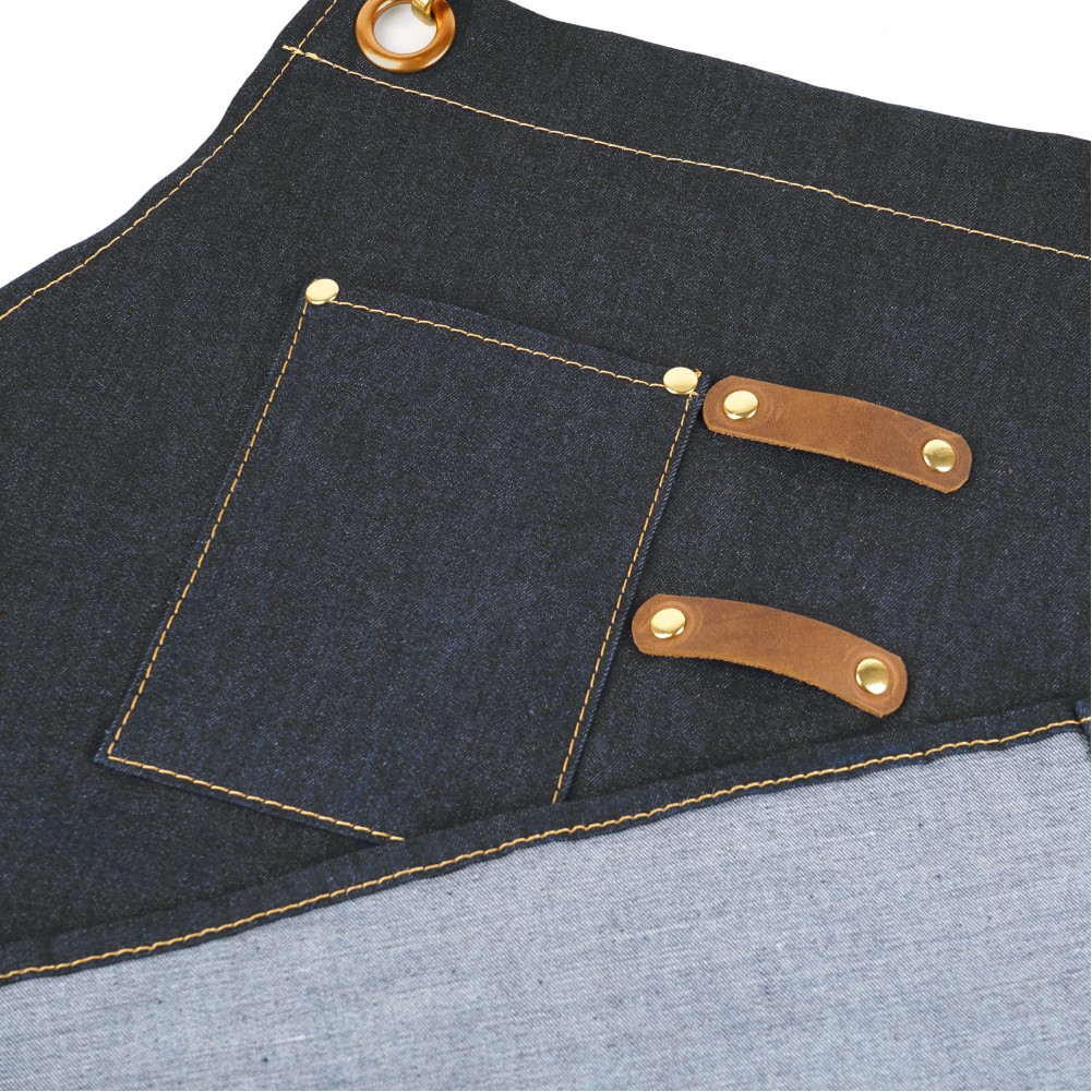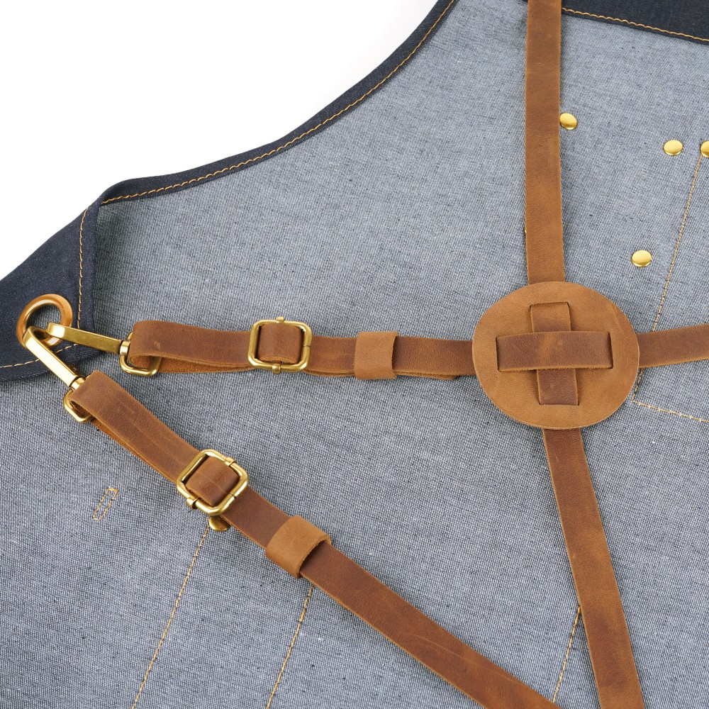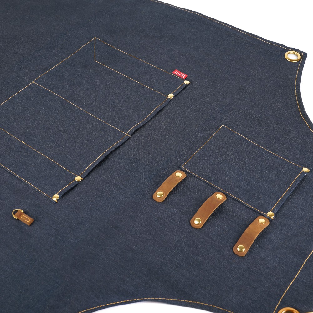 mi81 交叉背帶真皮牛仔工作圍裙牛仔深藍|帆布黃色Aprons & Kitchen Glovesmi81旗艦店