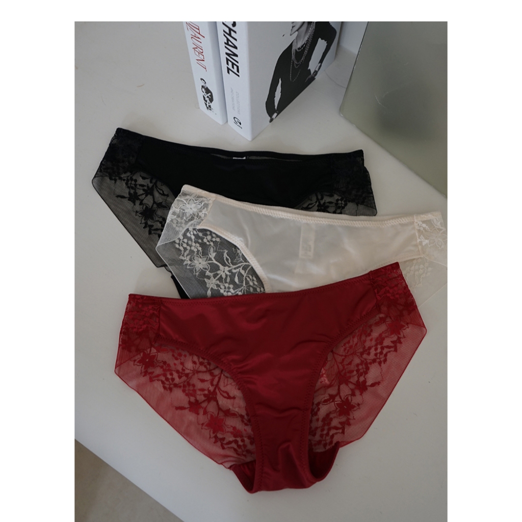【Mia Boutique】柔軟絲緞拼接蕾絲三角內褲酒紅色,L|黑,M|黑,L|裸膚白色,M|裸膚白色,L|酒紅色,MPantiesMia Boutique