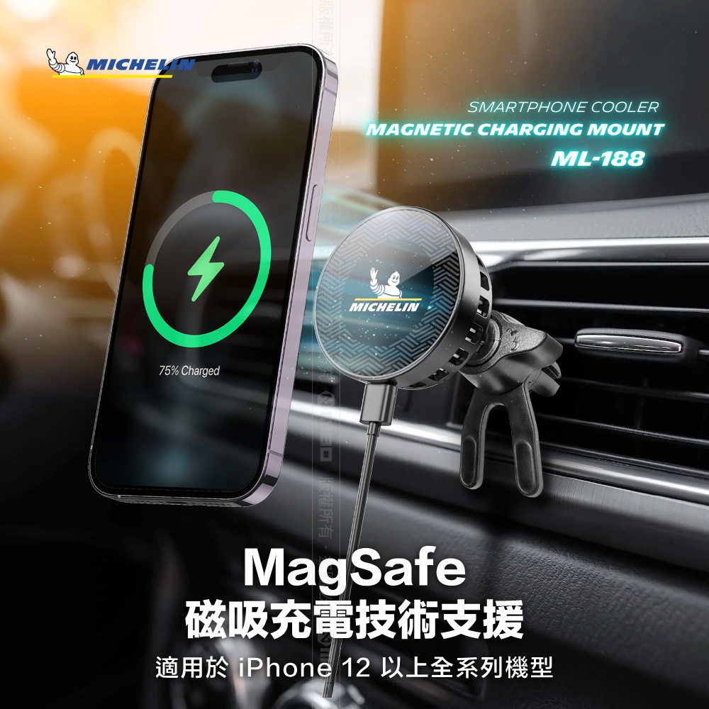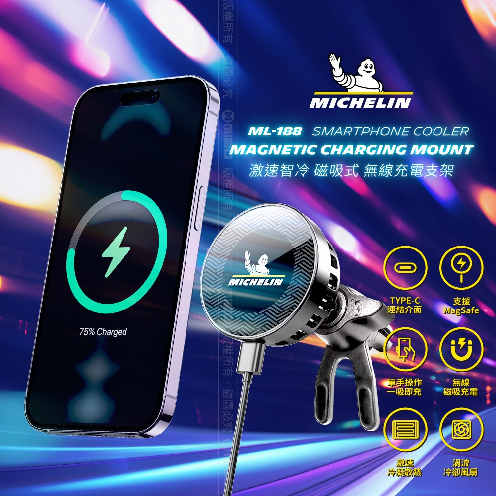 MICHELIN 米其林 車用 磁吸式 無線充電手機架 ML-188 導體冷卻 MagSafe 渦輪風扇 正品 公司貨簡配版|標配版Phone HoldersMICHELIN 米其林生活精品官方旗艦館