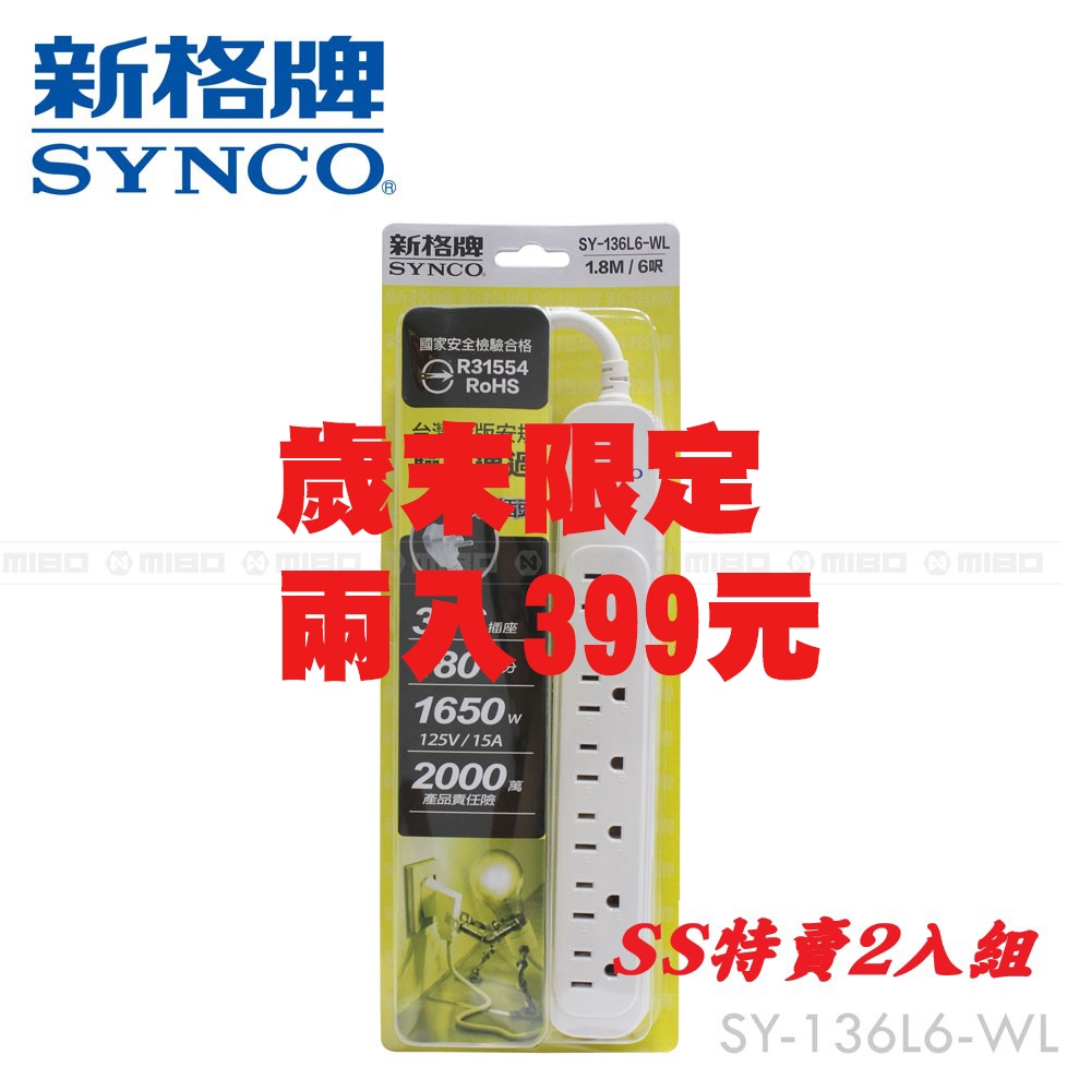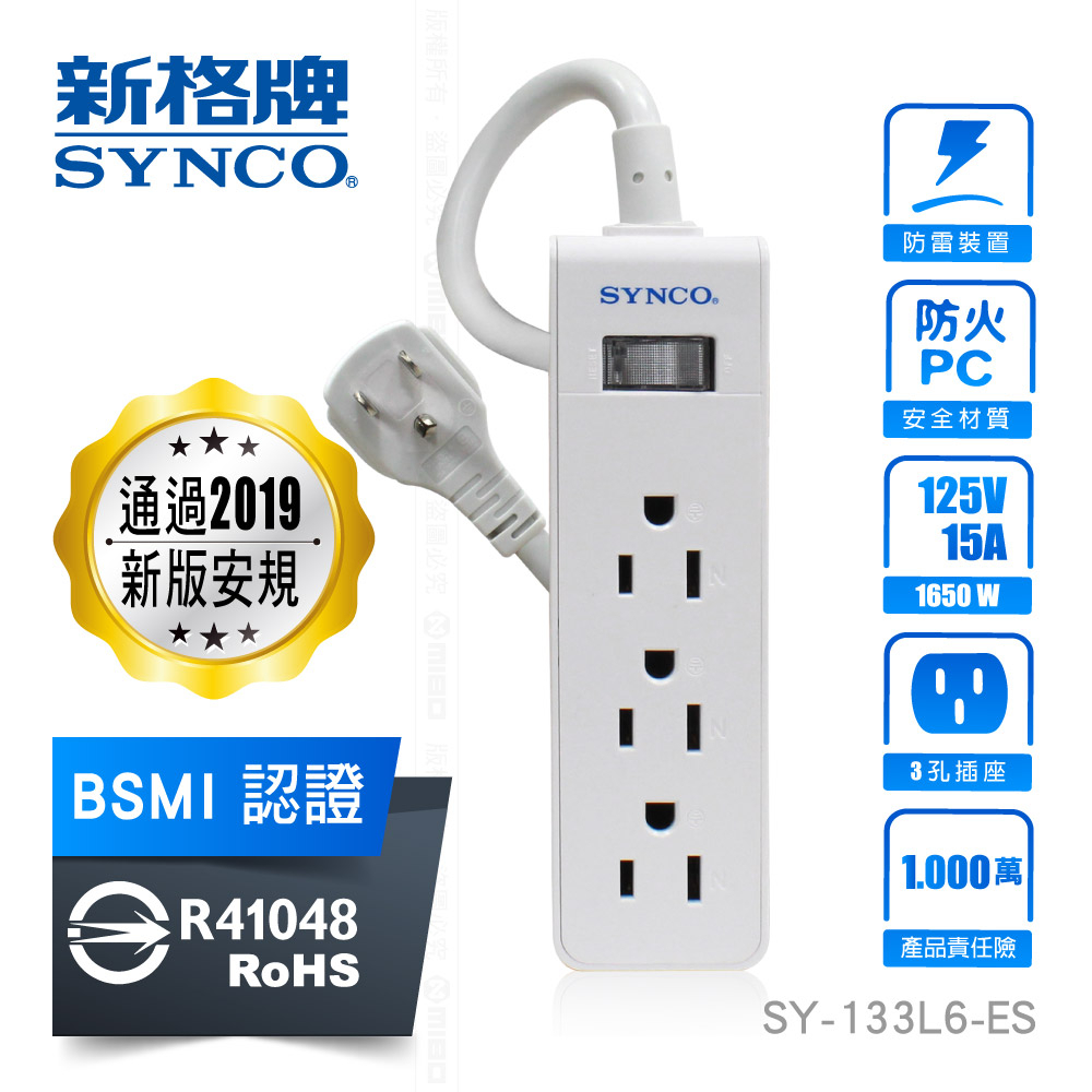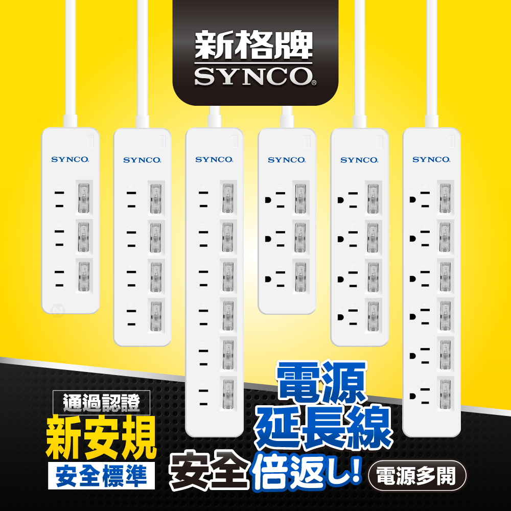 SYNCO 新格牌 安全延長線 單開系列 新安規 雙層絕緣 防突波 過載自動斷電 附蝦皮發票 甜甜價 4尺/6尺/9尺單開3孔6座四尺SY-136L4-WL|單開3孔6座六尺SY-136L6-WL|單開2孔3座六尺SY-123L6-ES|單開2孔3座九尺SY-123L9-ES|單開3孔3座六尺SY-133L6-ES|單開3孔4座六尺SY-134L6-ES|SS特賣SY-136L6-WL兩入|單開2孔3座六尺SY-123L6-GPElectric Sockets & Extension CordsMICHELIN 米其林生活精品官方旗艦館