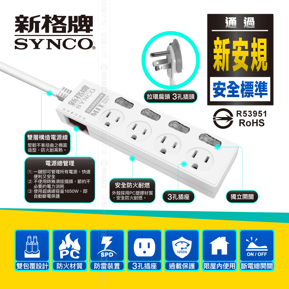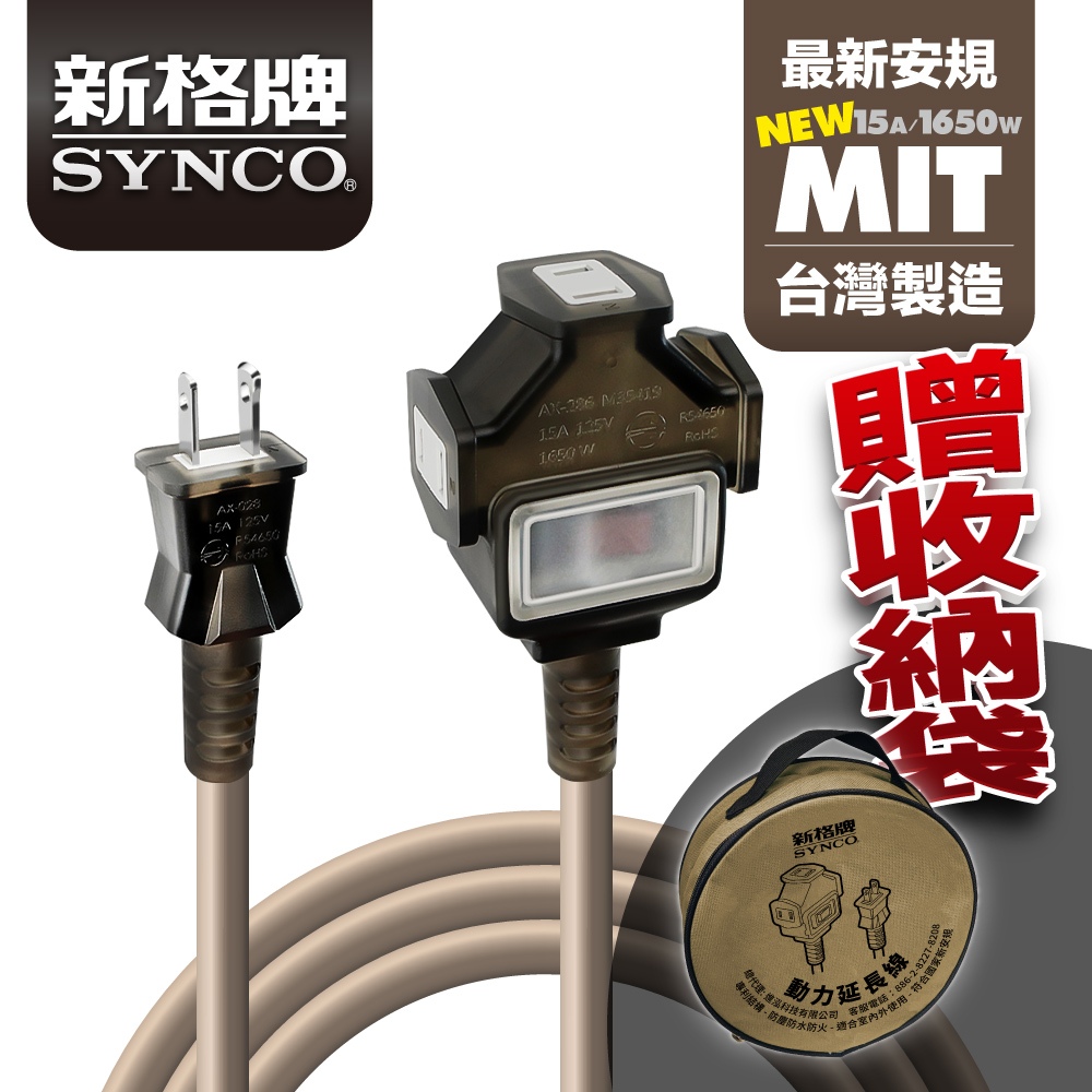 SYNCO 新格牌 動力延長線 佛心價 新安規 台灣製 擴充座 1M 2M 3M 防水防塵 過載自動斷電 低價格1M|2M|3M|擴充座(分接器)|3P轉2P 轉接頭 SD 二入組|3P轉2P 轉機頭 WL|3P轉2P 轉接頭 SN-01 二入組Electric Sockets & Extension CordsMICHELIN 米其林生活精品官方旗艦館