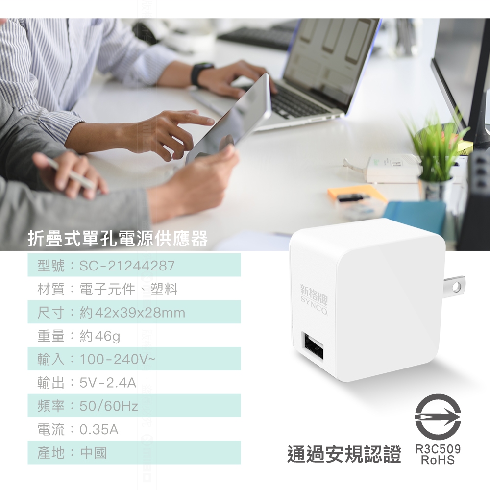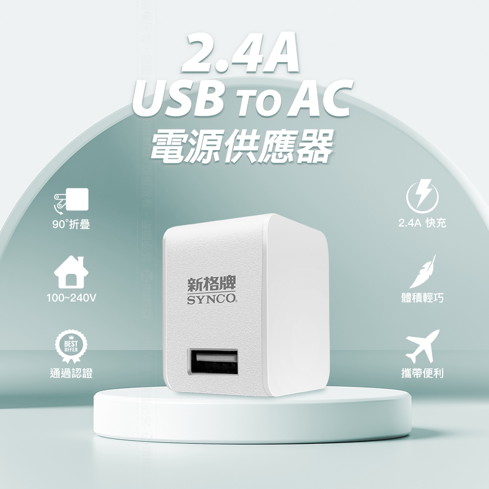 SYNCO 新格 SC-21244287 USB 折腳式 充電頭 5V 2.4A 適用電壓110-240VSYNCO 新格 SC-21244287 USB 折腳式 充電頭 5V 2.4A 適用電壓110-240VCables, Chargers & ConvertersMICHELIN 米其林生活精品官方旗艦館