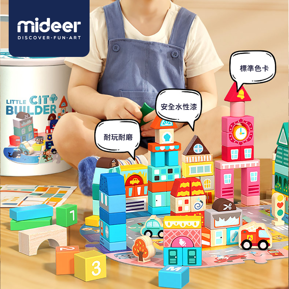 MiDeer 豪華積木系列 [台灣總代理官方直營店]寶寶早教木製多功能學習積木|夢幻城市積木|福利品全新無外盒-夢幻城市積木Block ToysMideer 台灣總代理官方直營店