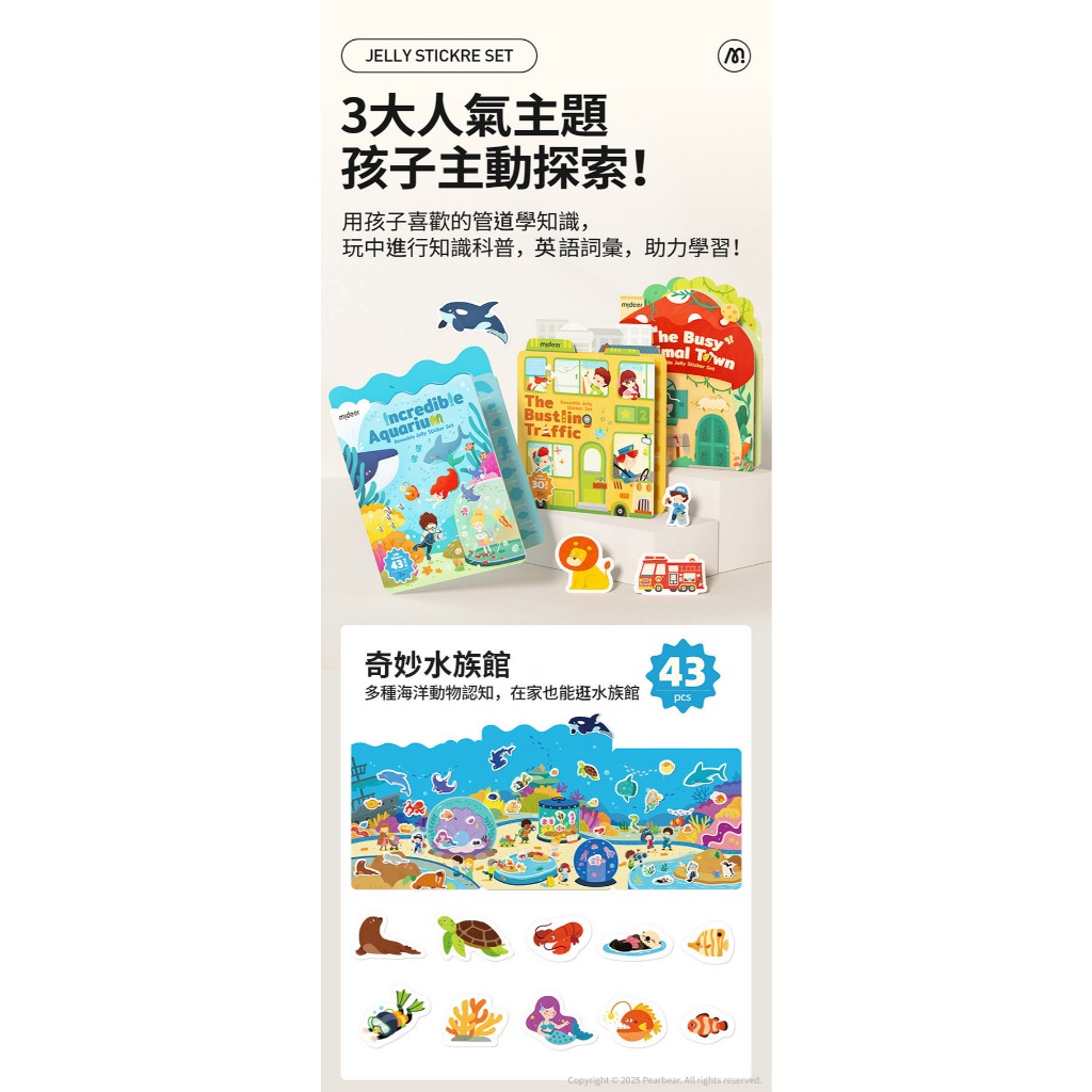 MiDeer 益智果凍貼紙書系列 [台灣總代理官方直營店]益智果凍貼紙書-奇妙水族館|益智果凍貼紙書-活力交通城|益智果凍貼紙書-繽紛動物鎮Educational ToysMideer 台灣總代理官方直營店