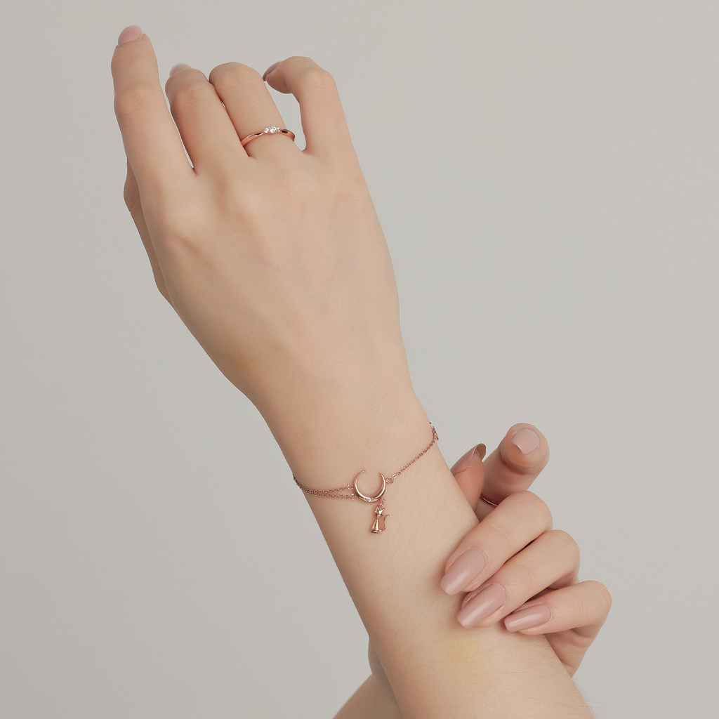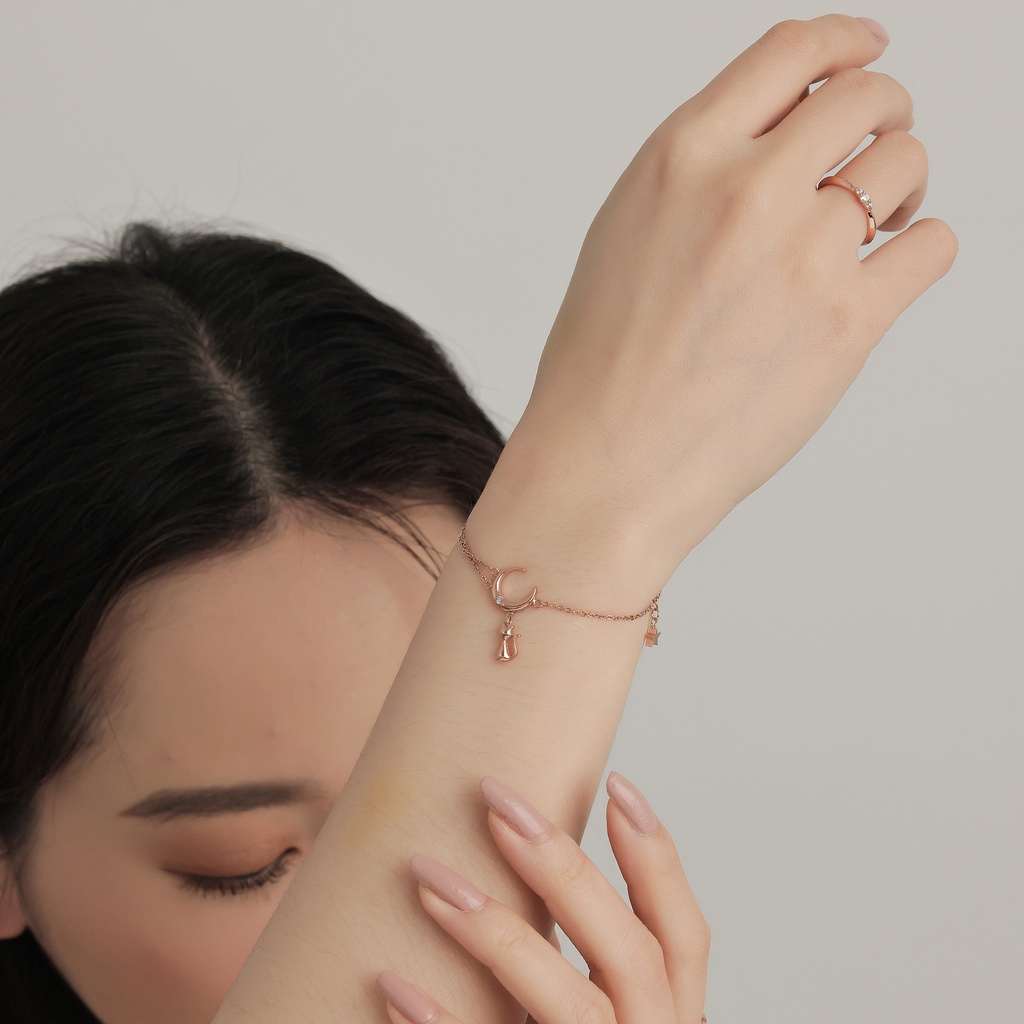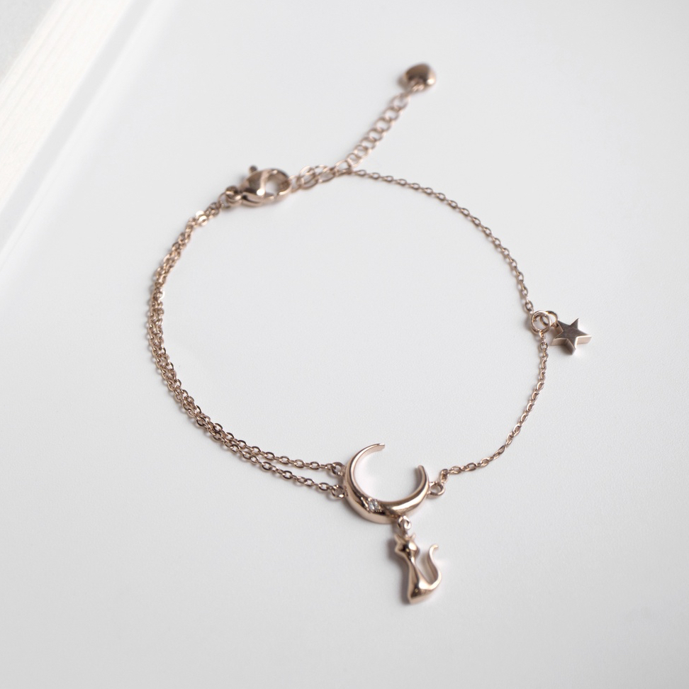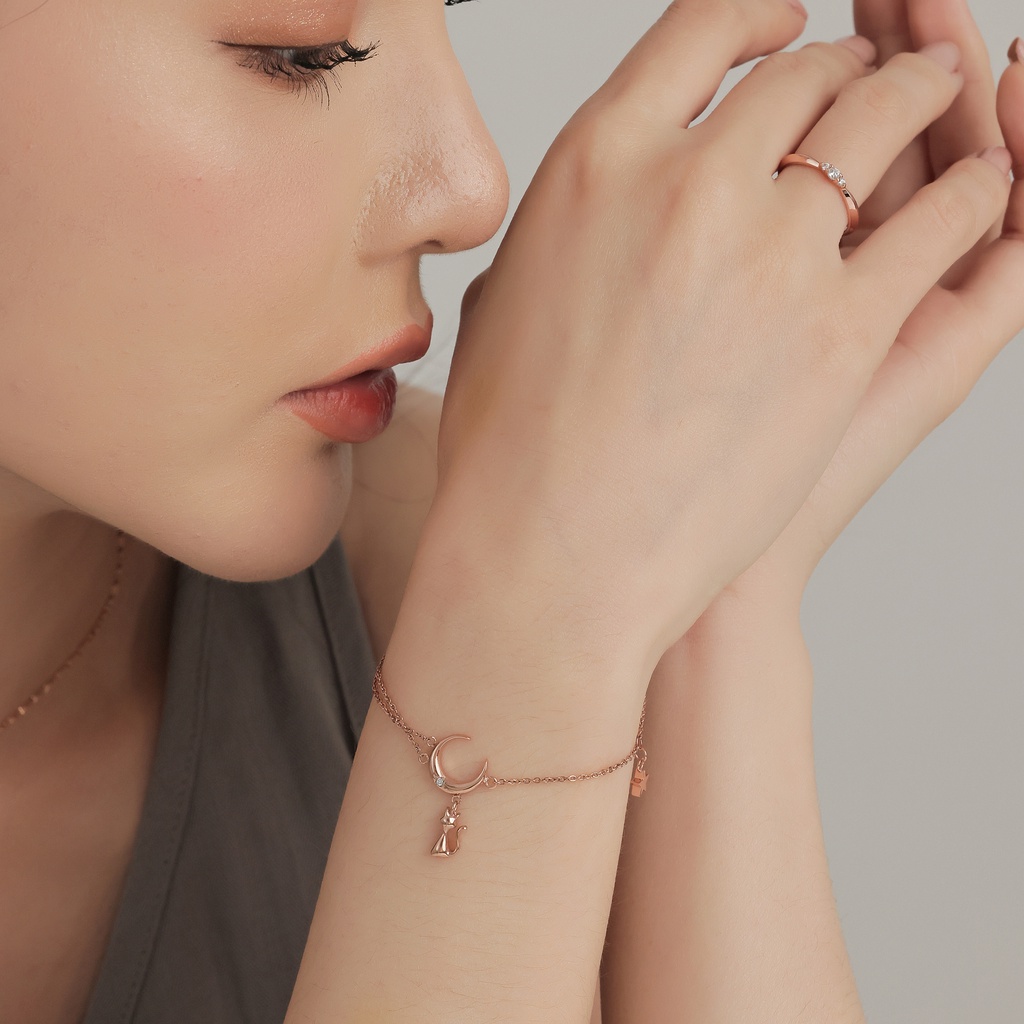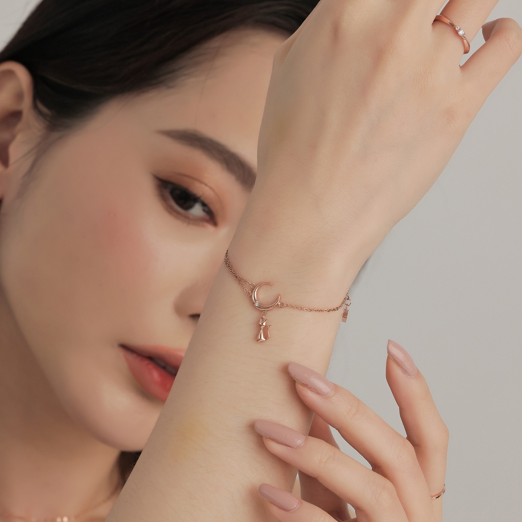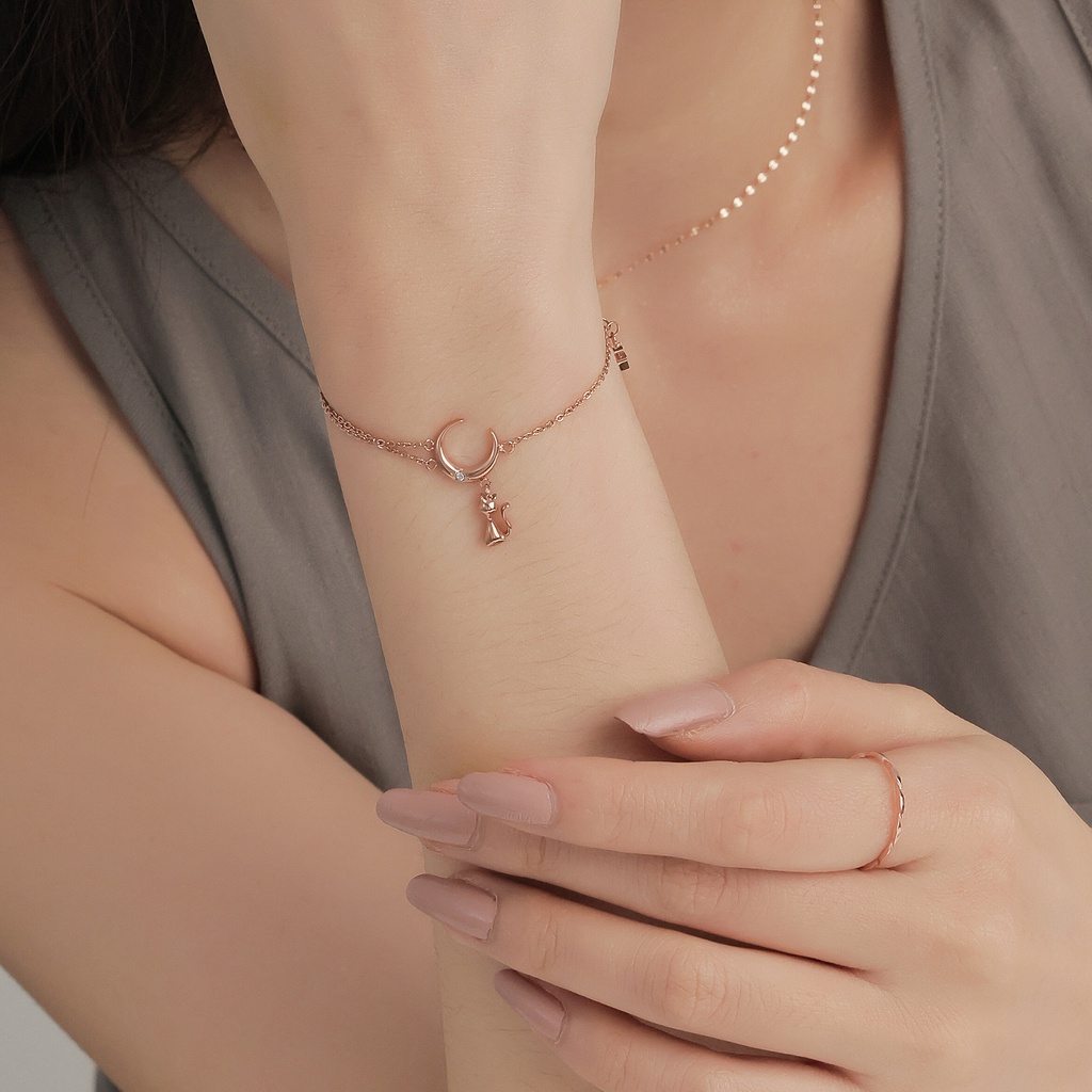 【MIESTILO】月夜漫想 貓咪手鍊|貓奴必備 月亮貓咪 白鋼手鍊 抗敏親膚玫瑰金|銀色MIESTILO