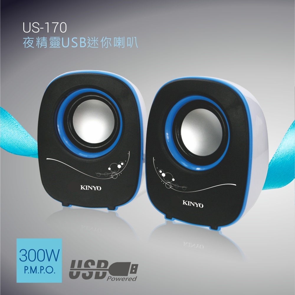 〖KINYO〗 夜精靈USB迷你喇叭 (US) USB供電 P.M.P.O. 300W|電腦喇叭 2.0音箱US170 USB立體音箱SpeakersKINYO官方旗艦店_家電館