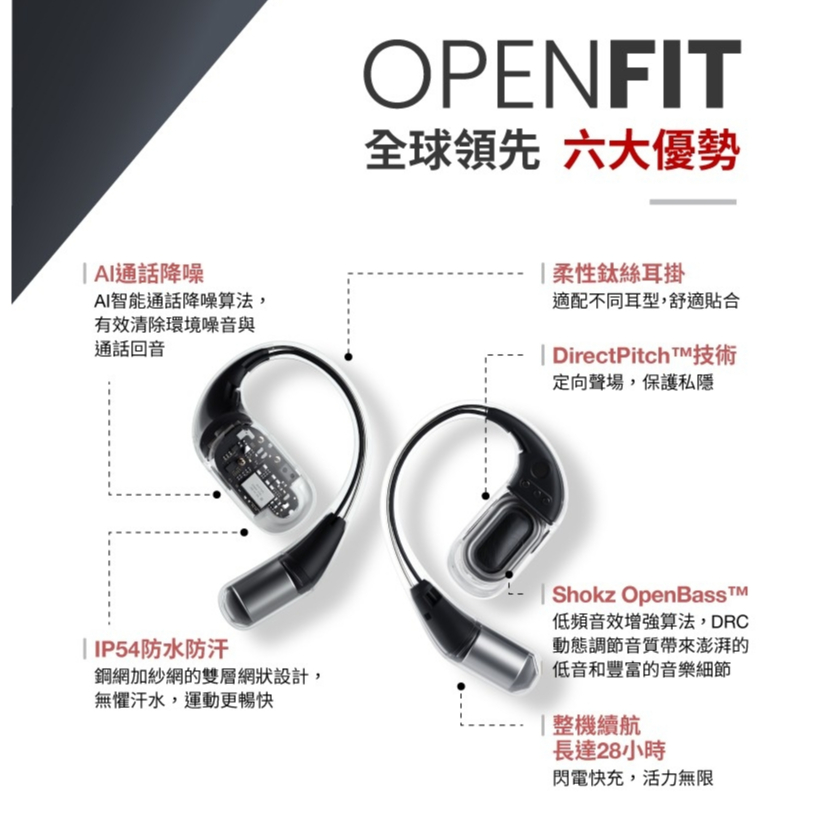 【SHOKZ】 OPENFIT 開放式藍牙耳機 T910 二色 耳掛式 IP54防水 運動耳機 原廠保固 台灣公司貨黑色|白色JC科技 官方旗艦店