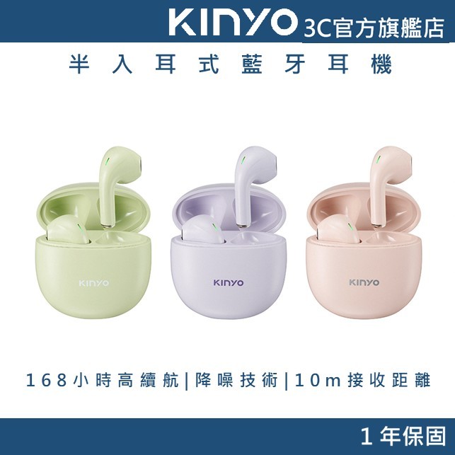 【KINYO官方直營】半入耳式藍牙耳機 (BTE) 168hr高續航 附Type-C充電線 防水防汗 無線耳機BTE3901PU 紫色|BTE3901PI 粉色|BTE3901G 綠色KINYO官方旗艦店_3C館