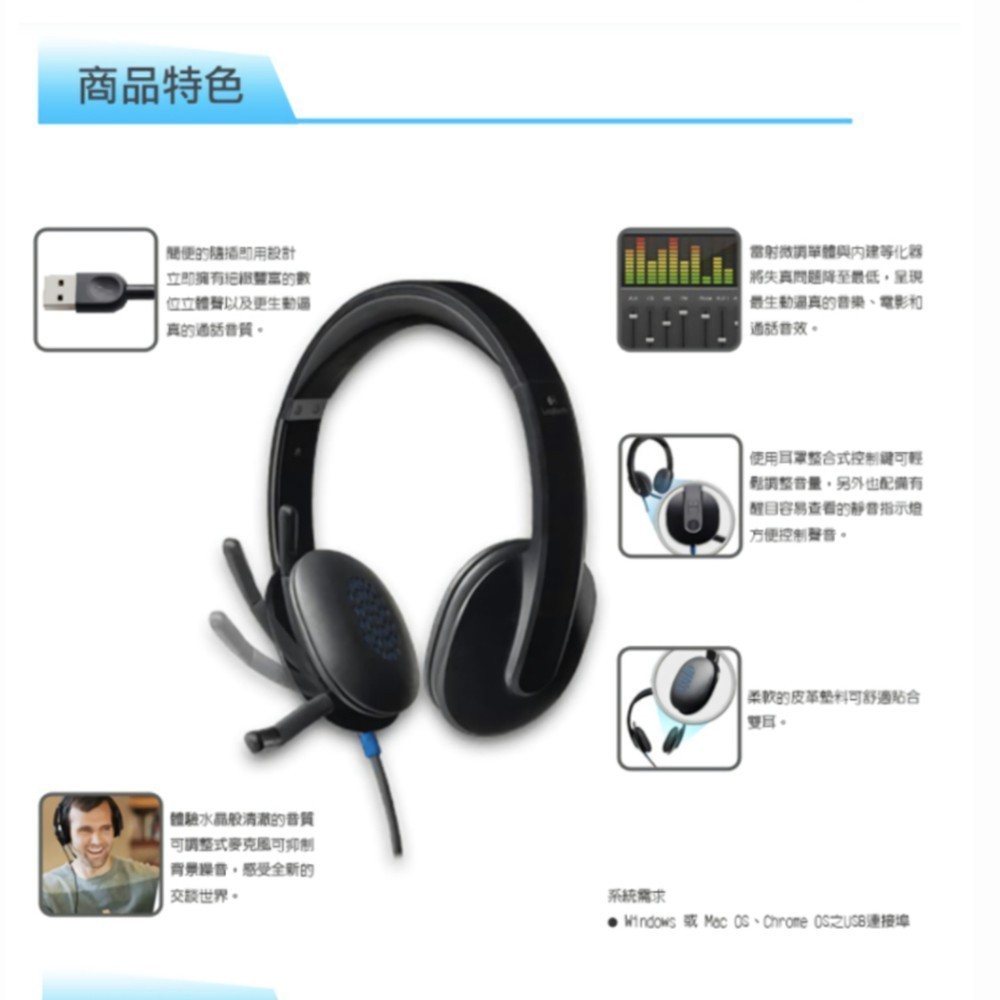 Logitech 羅技 H540 USB 耳機麥克風一入Logitech羅技官方旗艦館