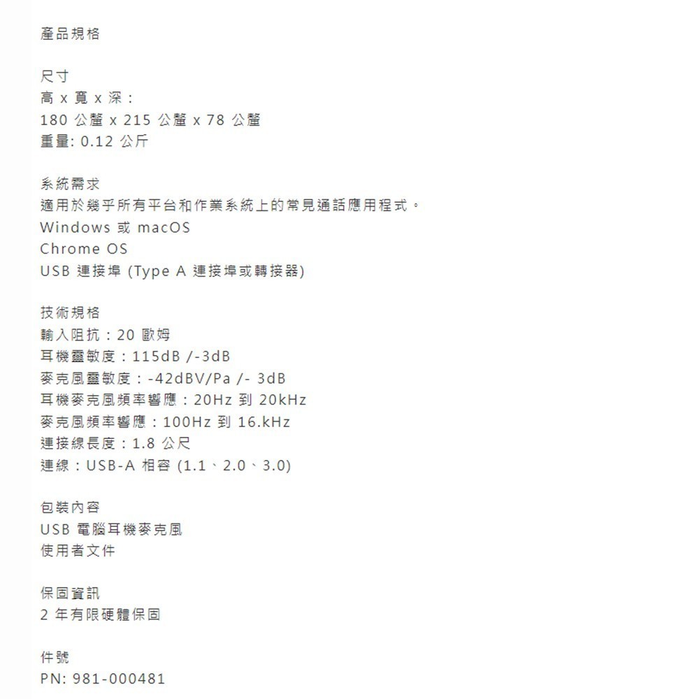 Logitech 羅技 H540 USB 耳機麥克風
