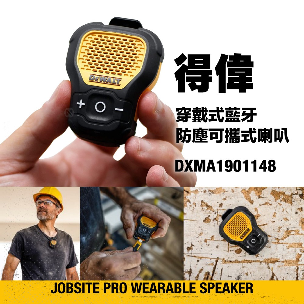 DEWALT 得偉 Jobsite Pro 穿戴式 便攜 磁吸 藍牙喇叭 IP56 防塵 防潑水 藍牙5.1 新品上市JOBSITE PRO 主機|主機+PDQC充電頭+C2C線材|主機+雙USB充電頭+USB2C線材SpeakersMICHELIN 米其林生活精品官方旗艦館