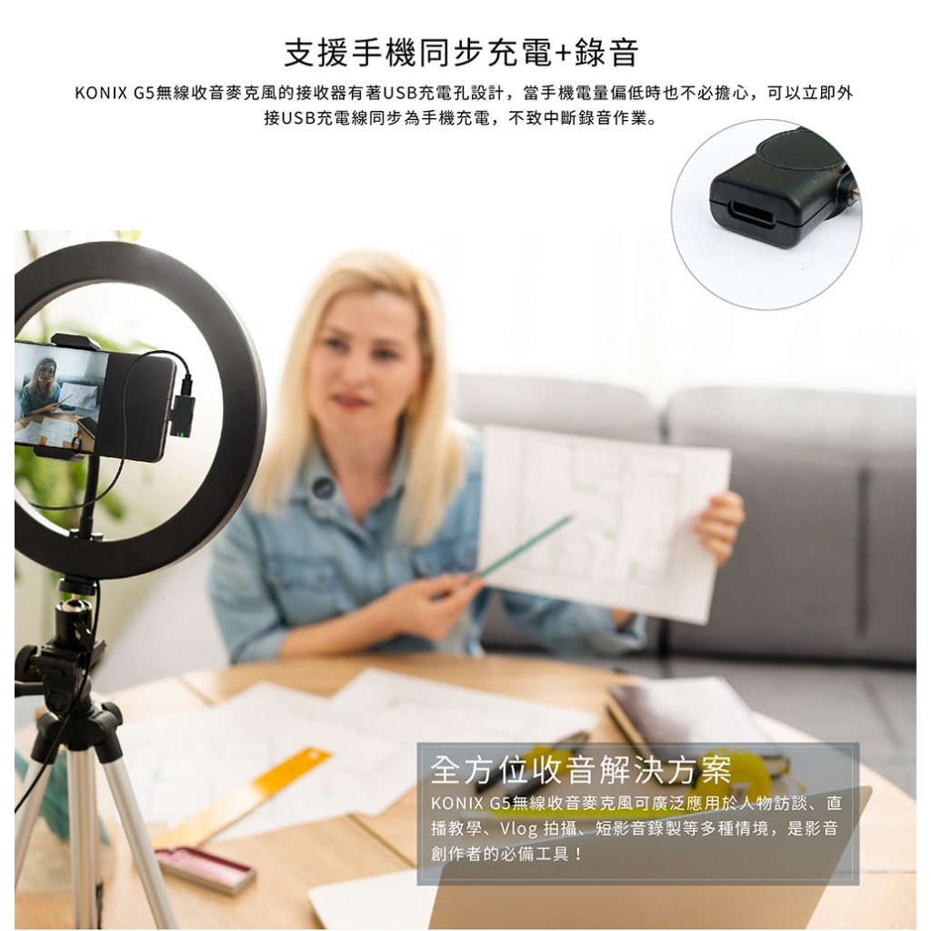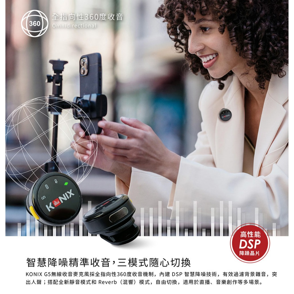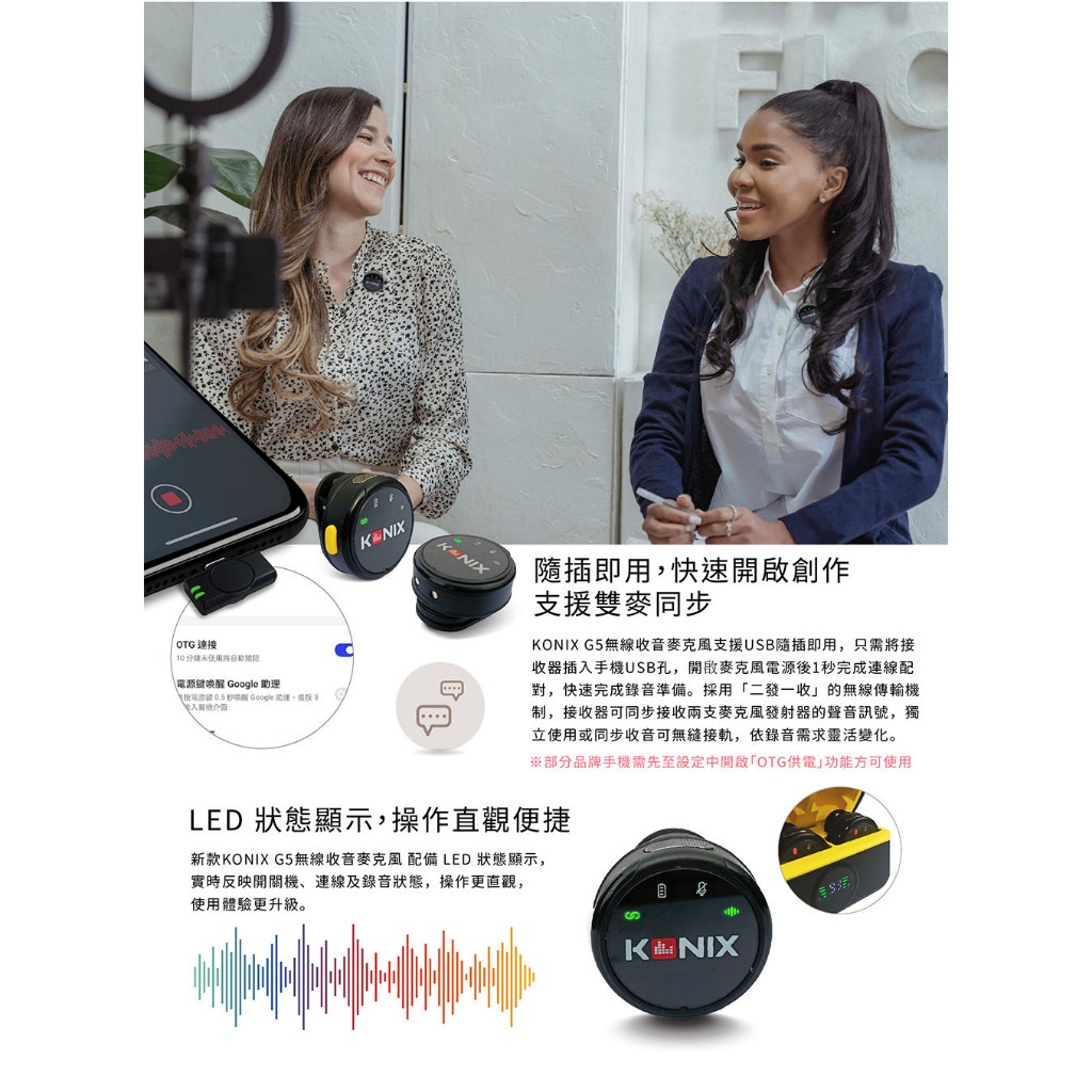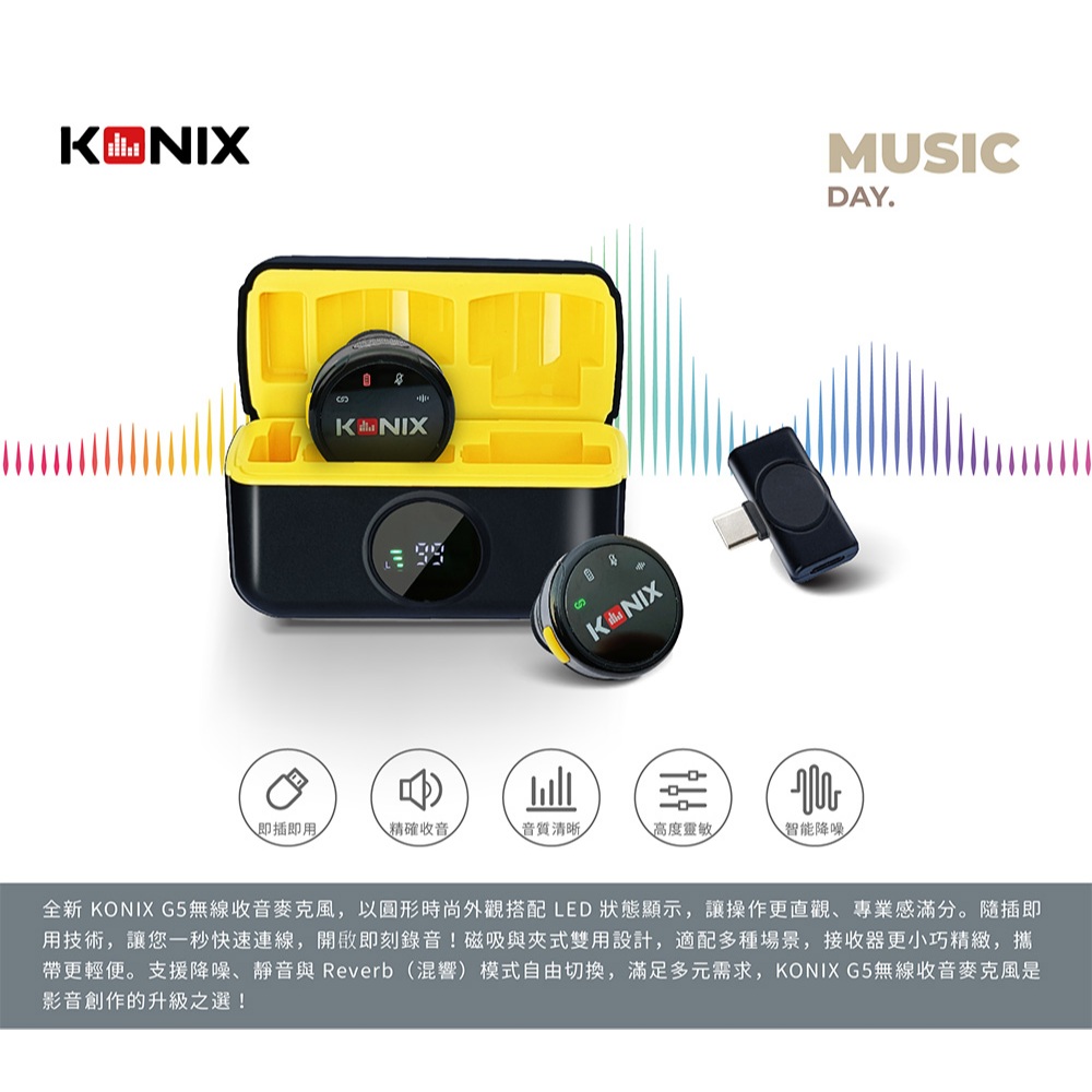 【KONIX】G5 無線收音麥克風 2025搶先上市 一對二無線麥克風 收音增強 抗雜音更優 附充電盒【KONIX】G5 無線收音麥克風 2025搶先上市 一對二無線麥克風 收音增強 抗雜音更優 附充電盒Greenon橘能