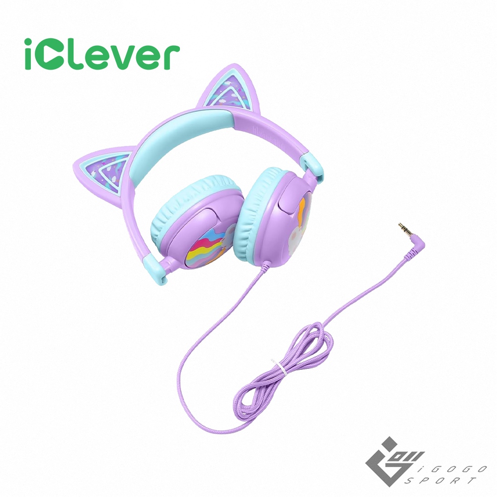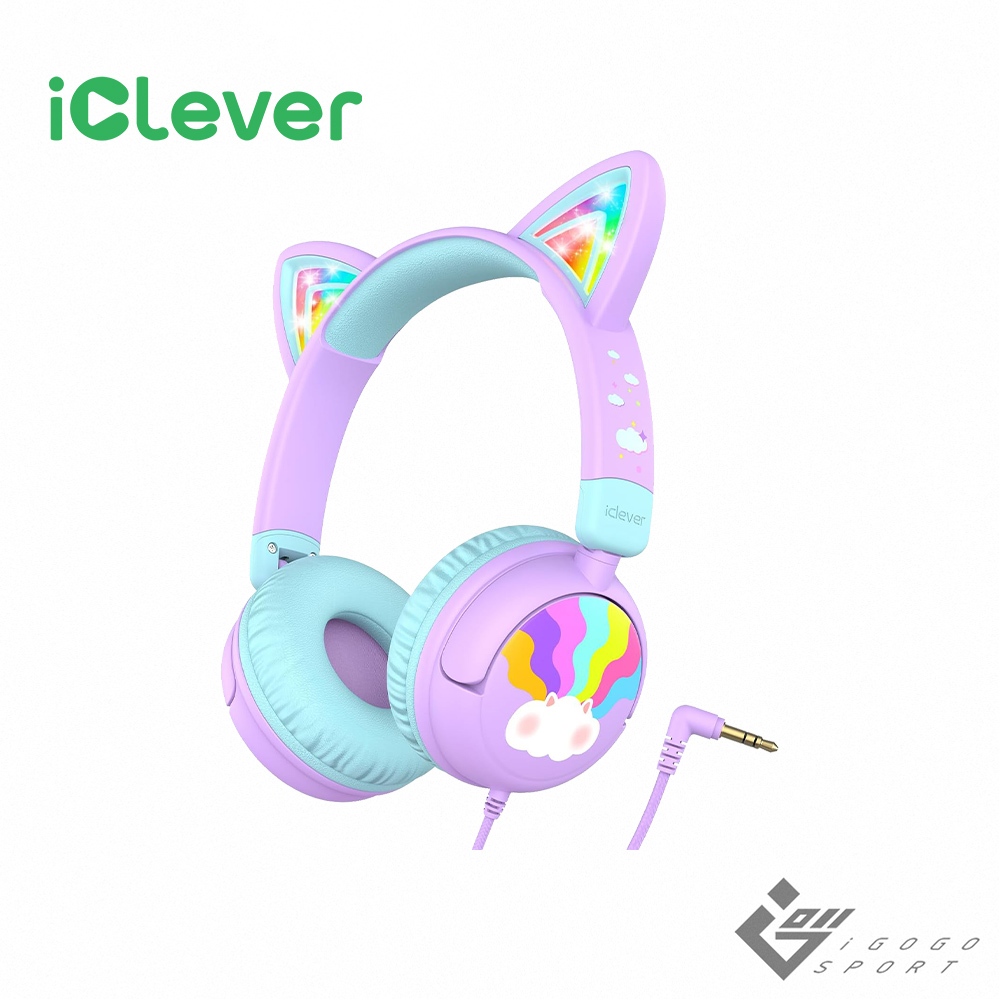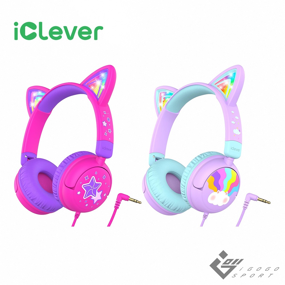 【iClever】HS25 炫光貓耳兒童耳機 ( 台灣總代理 – 原廠公司貨 )紫色|深粉色igogosport 官方旗艦店