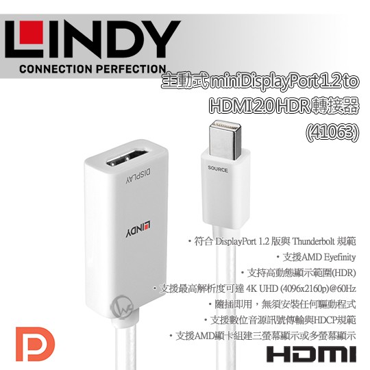 LINDY 林帝 主動式 mini DisplayPort 1.2 to HDMI 2.0 HDR 轉接器(41063)LINDY 林帝 主動式 mini DisplayPort 1.2 to HDMI 2.0 HDR 轉接器(41063)LINDY 林帝官方授權旗艦店