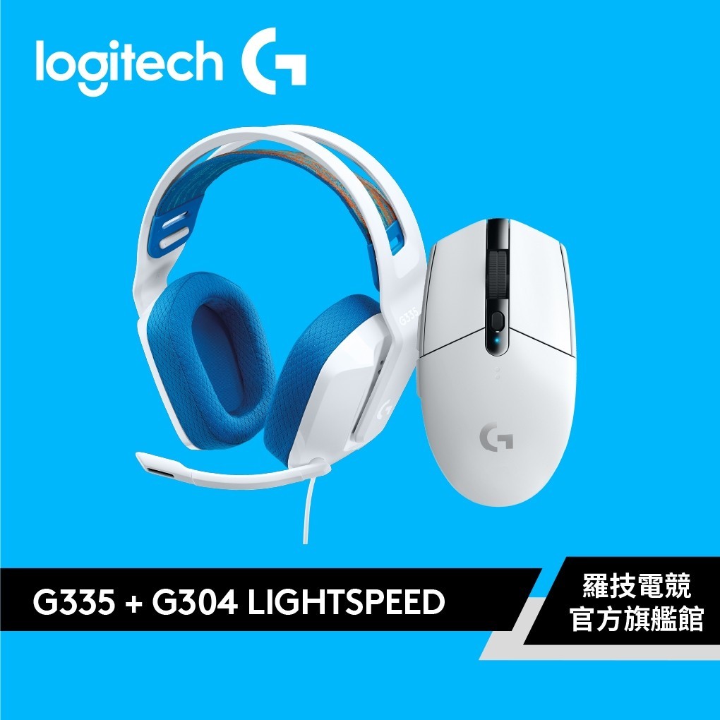 Logitech G 羅技 G335 有線電競耳機麥克風+ G304 LIGHTSPEED無線滑鼠 耳麥滑鼠組【電競館】G335白+G304白+【贈頭帶】|G335黑+G304黑+【贈頭帶】|G335黑+G304白+【贈頭帶】|G335白+G304黑+【贈頭帶】Logitech G 羅技電競官方旗艦館