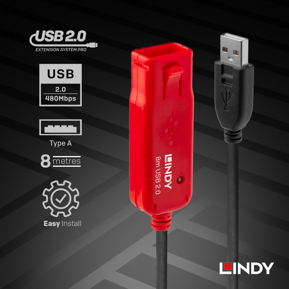 LINDY 林帝 USB 2.0 TYPE-A/公 TO TYPE-A母 主動式延長線 8M (42780)LINDY 林帝 USB 2.0 TYPE-A/公 TO TYPE-A母 主動式延長線 8M (42780)LINDY 林帝官方授權旗艦店