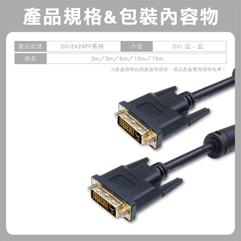 高畫質DVI 連接線, 雙磁環, 接點24+1, 鍍金頭數位影像線1.8米|3米|5米|10米|15米i-gota官方旗艦館|昶興電子