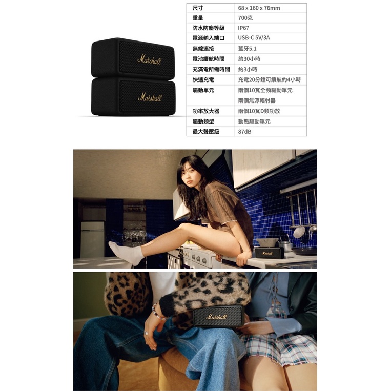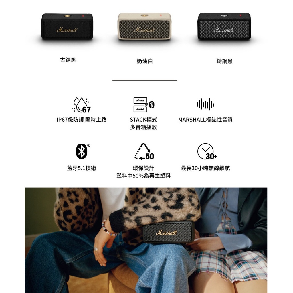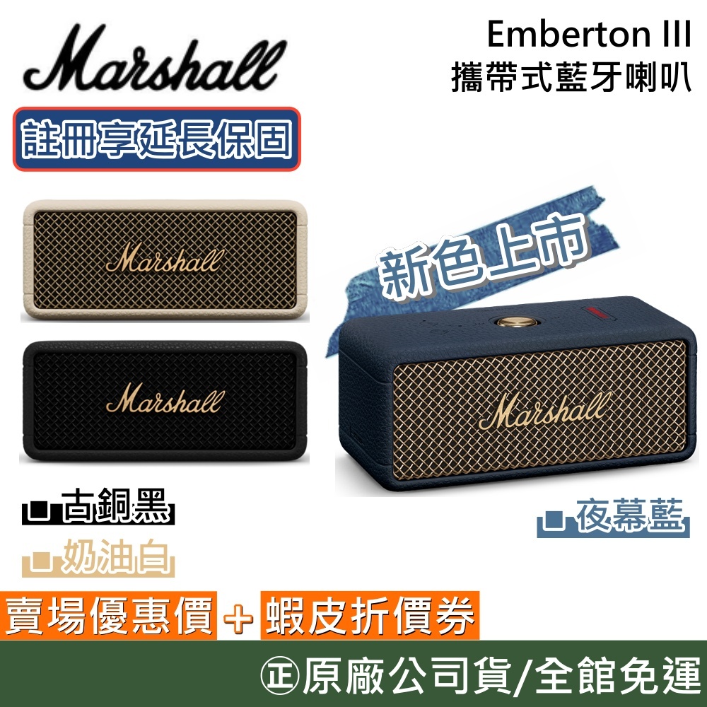 Marshall EMBERTON III【新色現貨上市】 第三代/第二代 藍牙喇叭 EMBERTON II升級改款現貨上市!!! – 夜幕藍(三代)|預購 – 古銅黑(三代)|預購 – 奶油白(三代)GSIR家電生活館