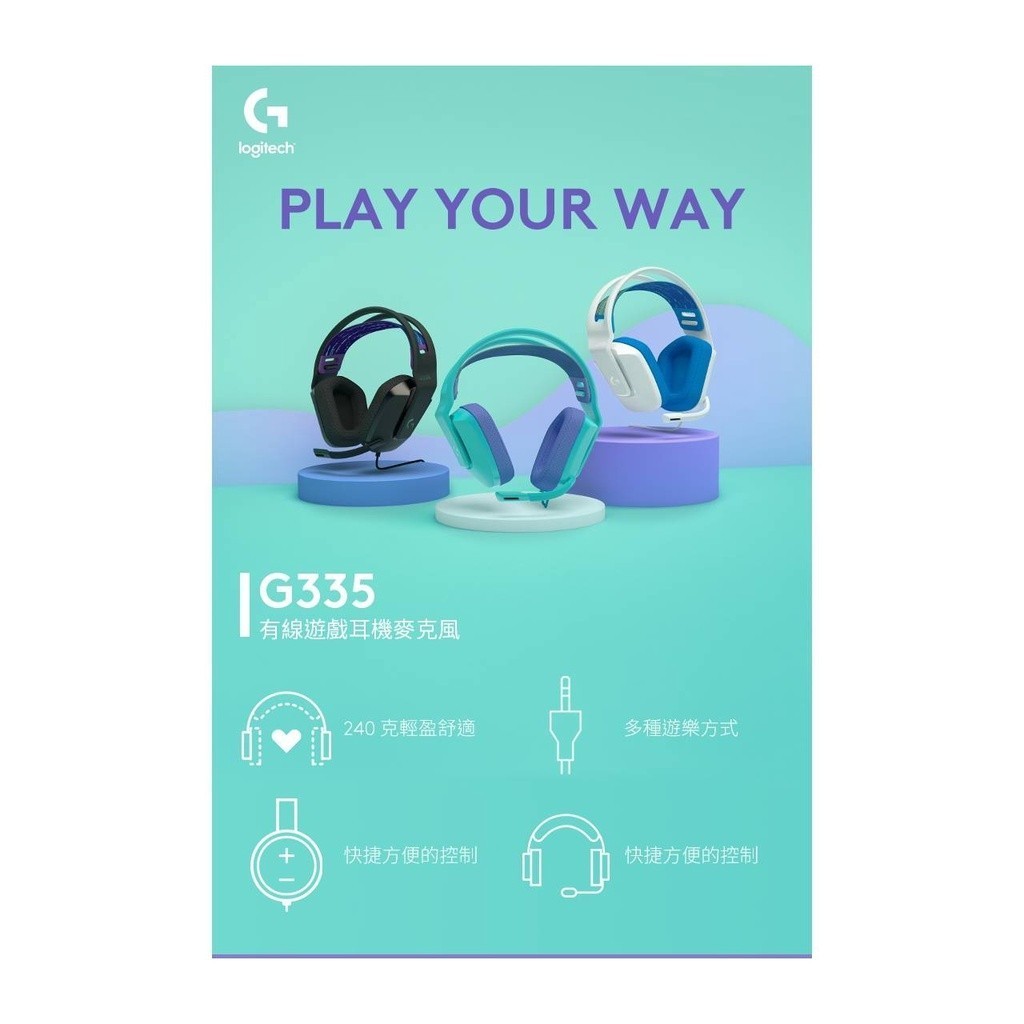 Logitech G 羅技 G335 輕盈有線電競耳機麥克風【電競館】黑色|白色|綠色Logitech G 羅技電競官方旗艦館