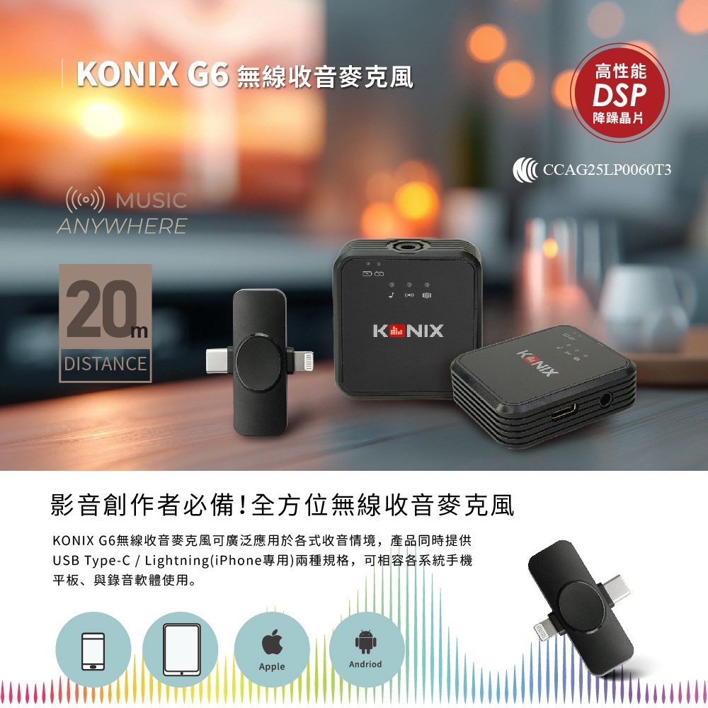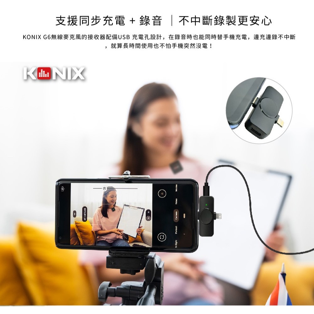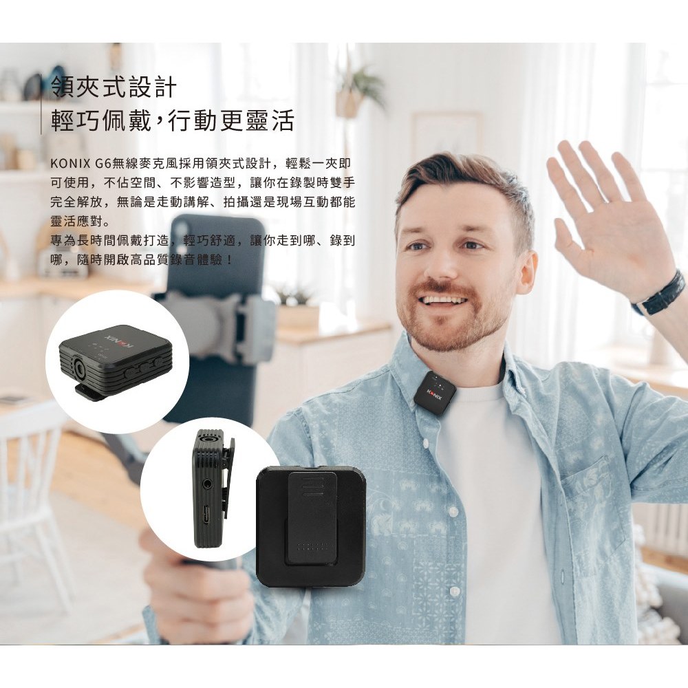 【KONIX】G6 無線收音麥克風 安卓蘋果皆適用 一對二無線麥克風 領夾式麥克風【KONIX】G6 無線收音麥克風 安卓蘋果皆適用 一對二無線麥克風 領夾式麥克風Greenon橘能