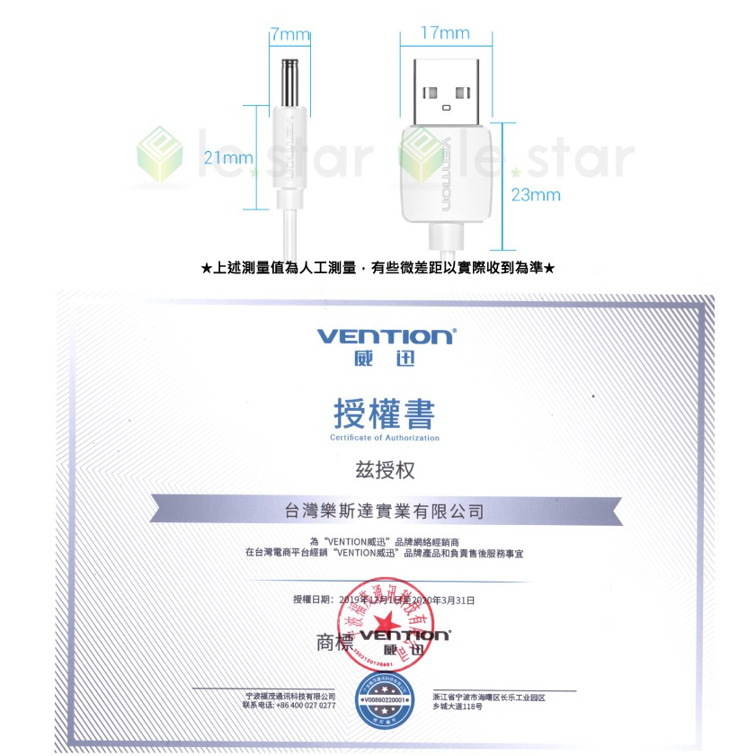 VENTION 威迅 CEX系列 USB轉DC 3.5mm 充電線 1M 公司貨 小圓孔 檯燈 音響 風扇 小家電白色|黑色lestar簡單生活