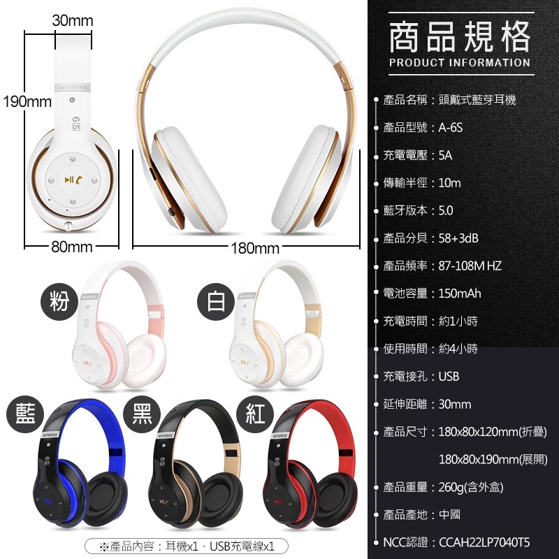 耳罩式藍芽耳機 A-6S 耳罩式耳機 電腦耳機 無線藍牙耳機 全罩耳機 頭戴式耳機 耳機 耳罩 藍芽A-6S 耳罩式耳機/黑色|A-6S 耳罩式耳機/白色|A-6S 耳罩式耳機/紅色|A-6S 耳罩式耳機/粉色|A-6S 耳罩式耳機/藍色Larmi 樂米 台灣直營店