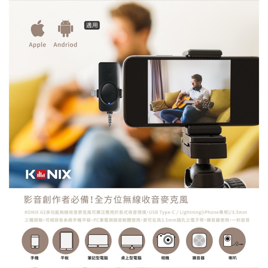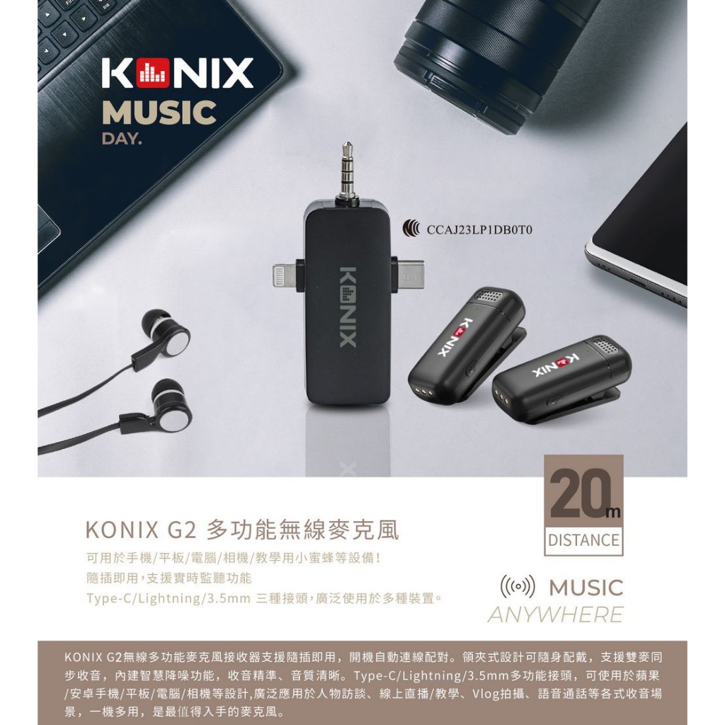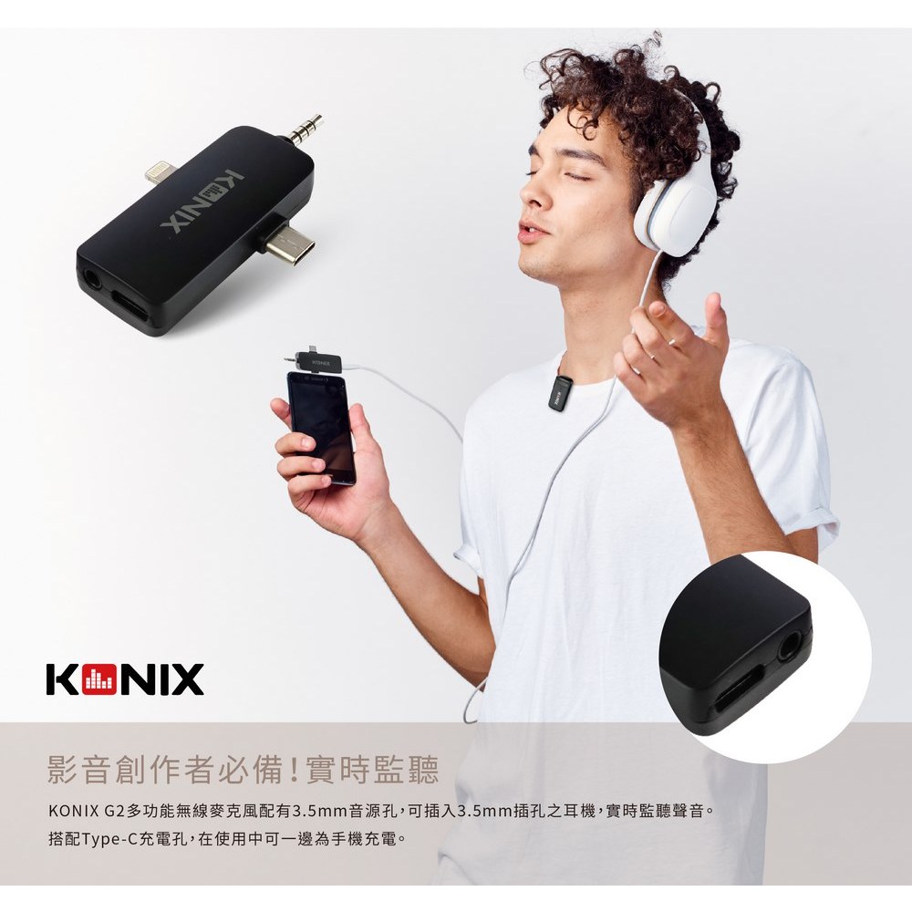 【KONIX】G2 多功能無線麥克風 三合一領夾式直播麥克風 手機藍牙麥克風 具監聽功能【KONIX】G2 多功能無線麥克風 三合一領夾式直播麥克風 手機藍牙麥克風 具監聽功能Greenon橘能