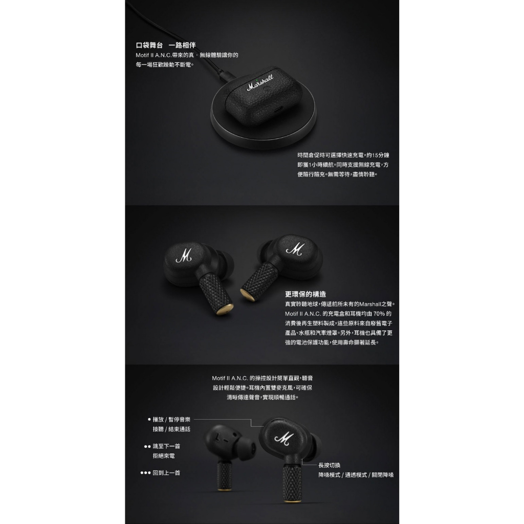 Marshall MOTIF-ANC 二代主動式抗噪真無線藍牙耳機 Motif II A.N.C 原廠公司貨MOTIF II-ANC(二代)|MOTIF-ANC(一代)GSIR家電生活館