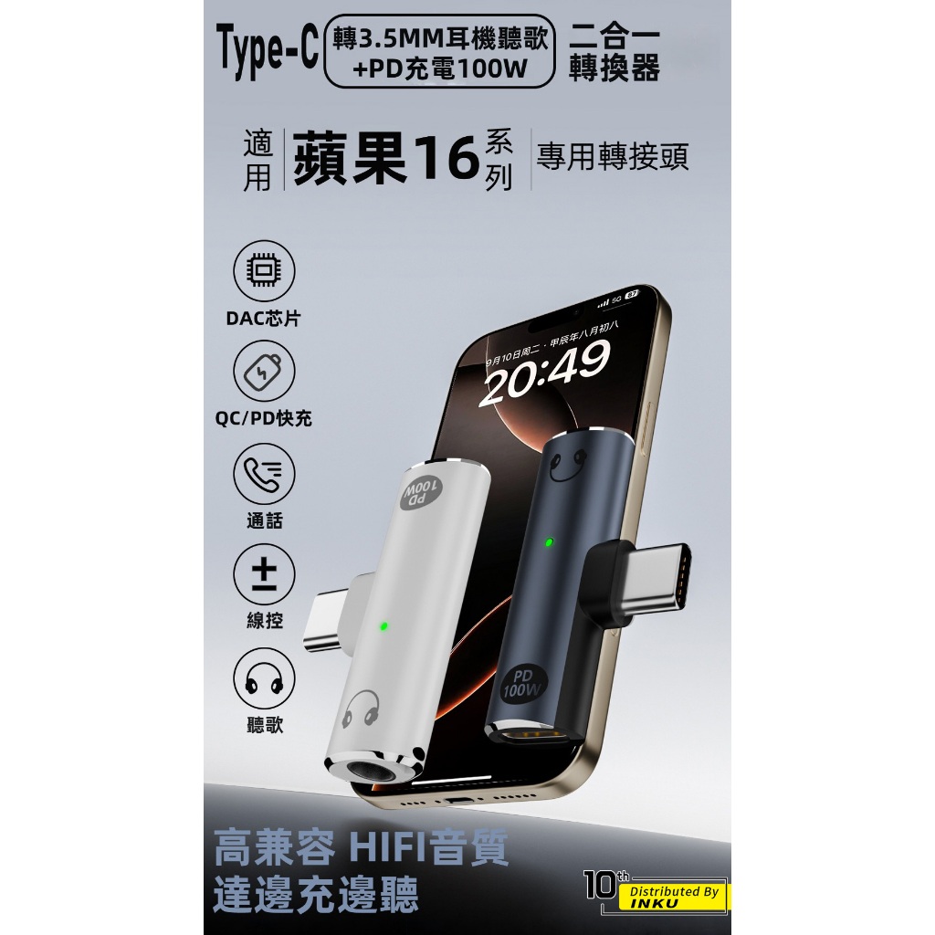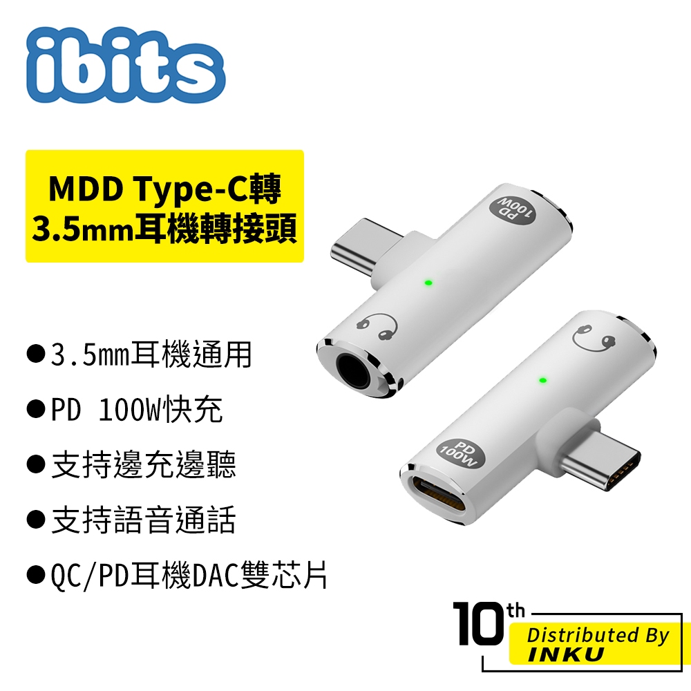 ibits MDD Type-C轉3.5mm耳機轉接頭 PD100W快充 二合一適用蘋果16白色|灰色ibits手機配件 官方旗艦館