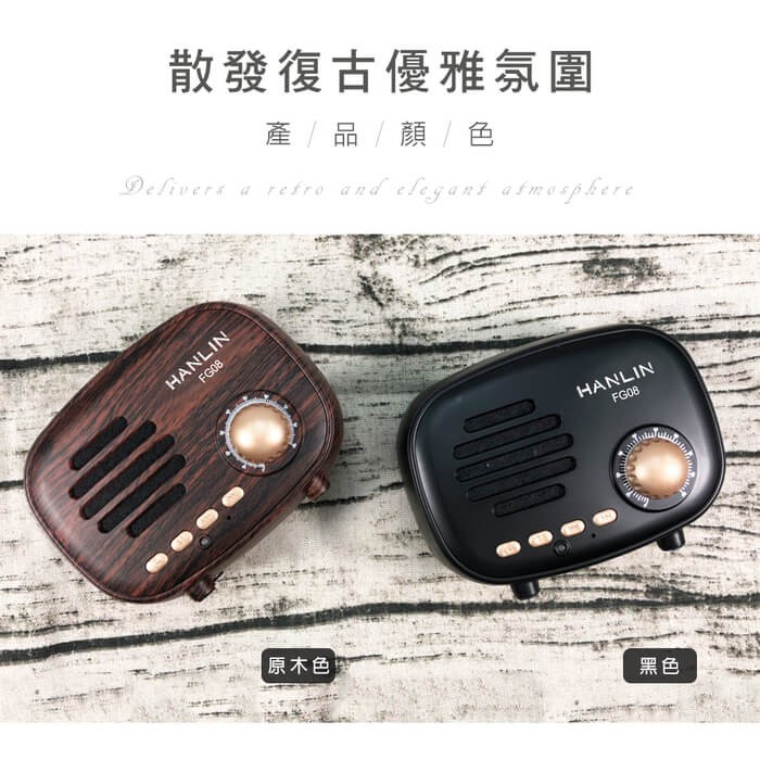HANLIN-FG08 震撼美聲藍牙復古小音箱 藍芽喇叭 TF 隨身碟 記憶卡 APP通話 USB 復古黑色|咖啡色SpeakersHANLIN官方旗艦店