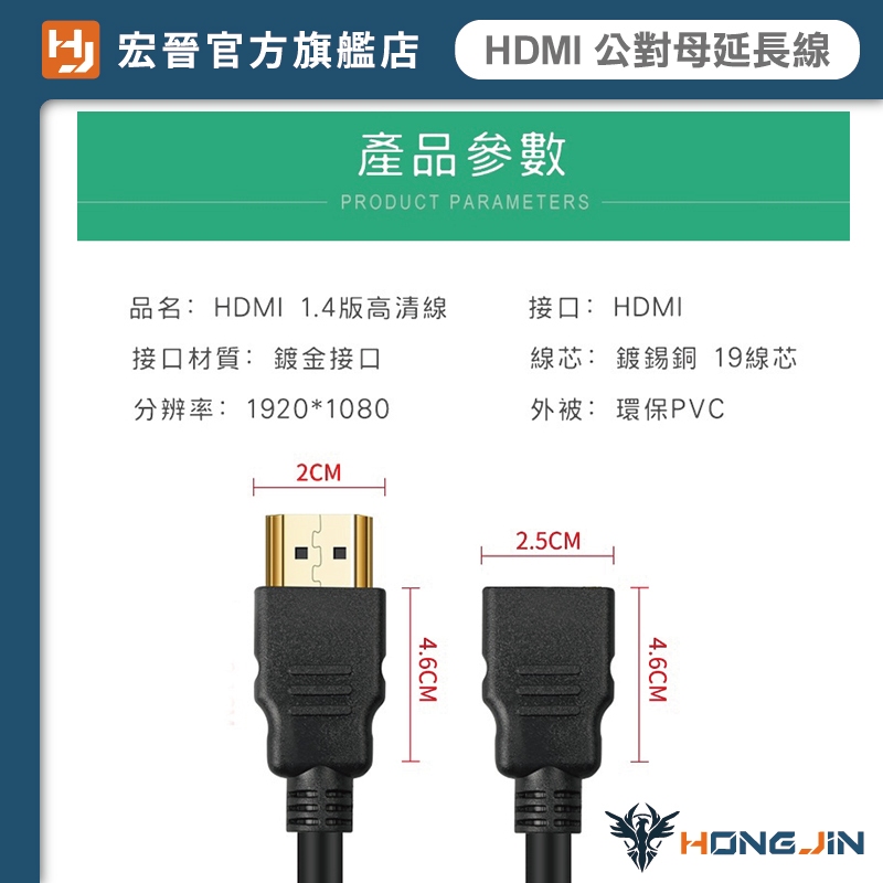 HDMI延長線 HDMI公對母延長線 1.5米HDMI線 公對母影音延長線 支持高清1080P1.5米 HDMI公母延長線HONG JIN 宏晉 |3C資訊廣場