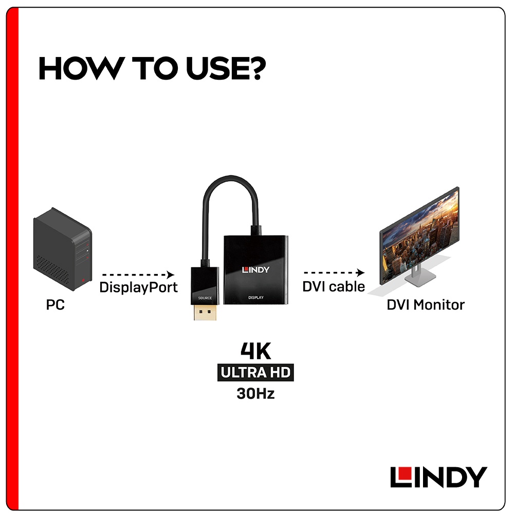 LINDY 林帝 主動式 DisplayPort 轉 DVI-D 轉接器 (41734)LINDY 林帝 主動式 DisplayPort 轉 DVI-D 轉接器 (41734)LINDY 林帝官方授權旗艦店