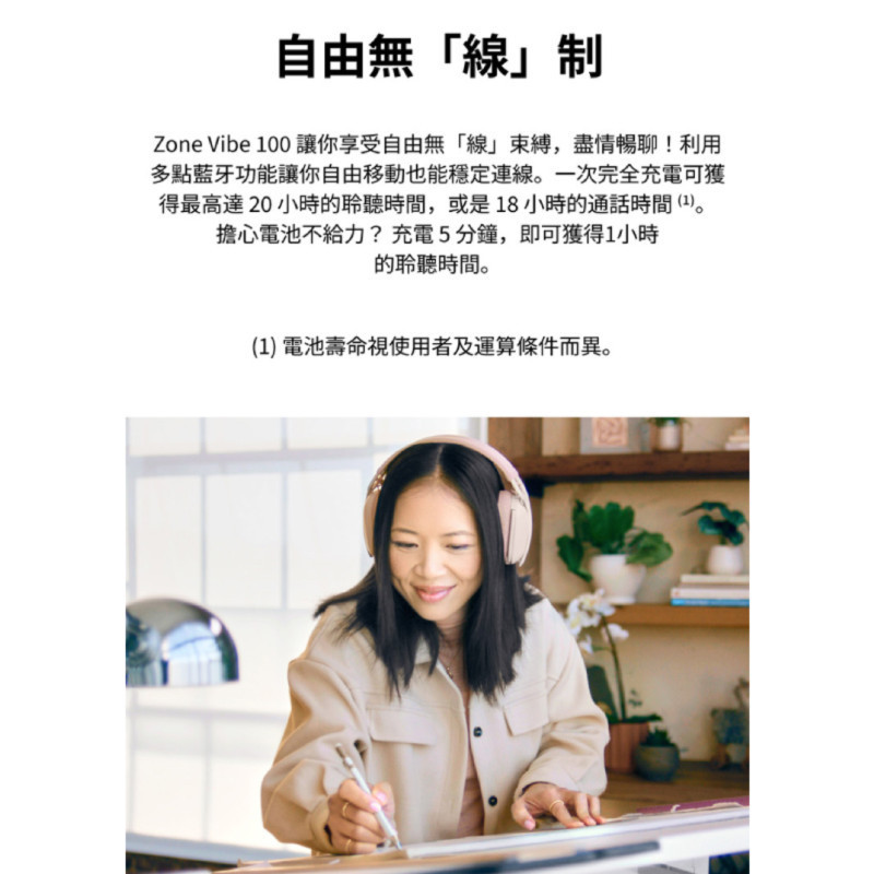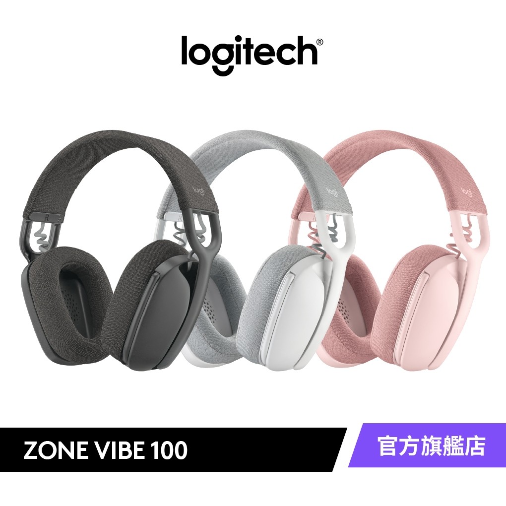 Logitech 羅技 Zone Vibe 100 無線藍牙耳機麥克風石墨灰|珍珠白|玫瑰粉Logitech羅技官方旗艦館